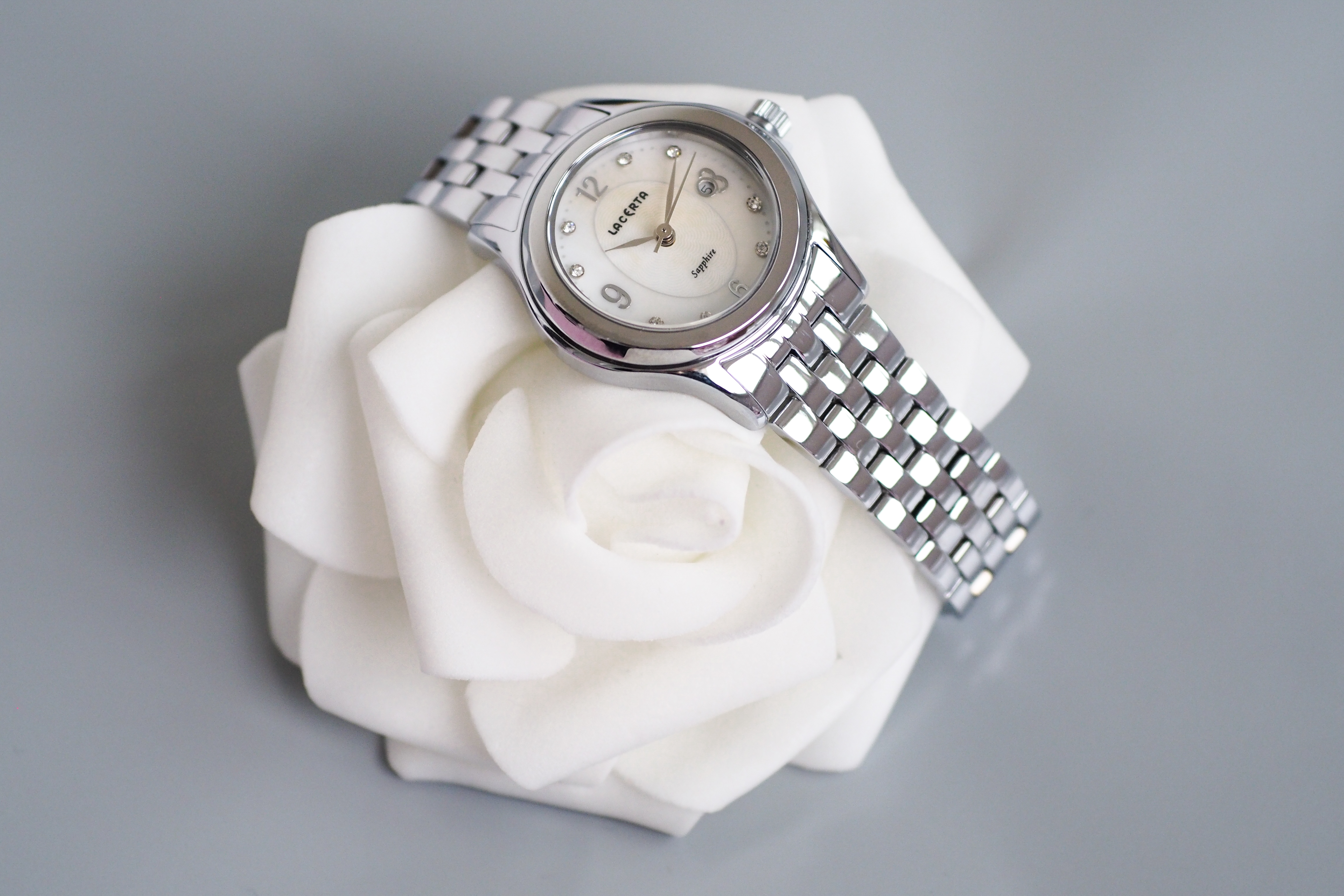 • Funkce a popis:Čas, datum, číselník zdobí zirkony, Švýcarský strojek – Ronda 775