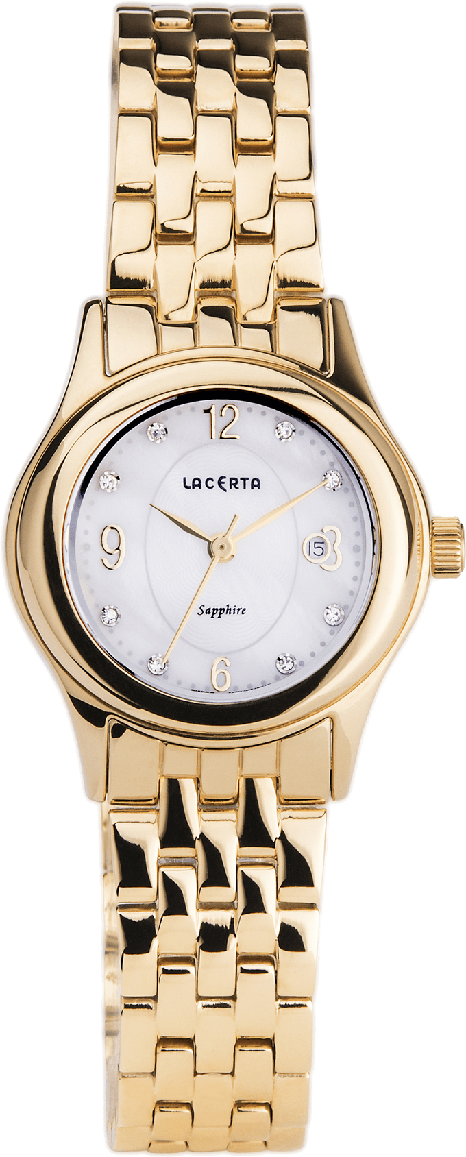 Šperkové hodinky Lacerta tvoří špičku nabídky náramkových hodinek firmy JVD, jak po stránce kvality, tak po stránce vlastní tvořivosti. Základem je opět nerezová ocel, safírové sklo na všech modelech a nejkvalitnější švýcarský strojek značky RONDA. Zdobení pravými zirkony v číselníku, které nejsou lepené, ale pasované. Vše je prvotřídně zpracováno a v té nejvyšší kvalitě.