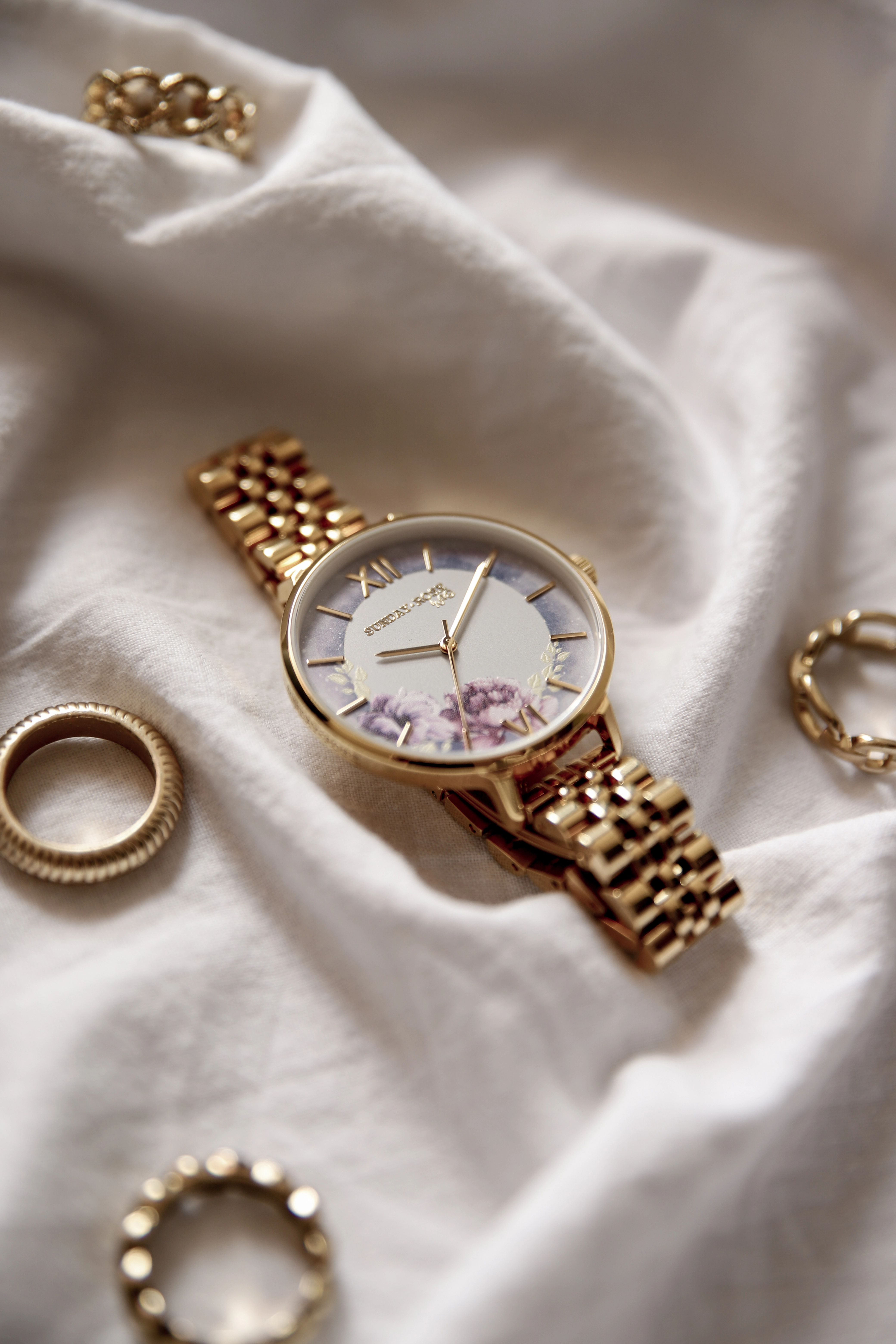 • Funkce a popis:Čas, japonský strojek – Miyota, číselník zdobí něžné květy