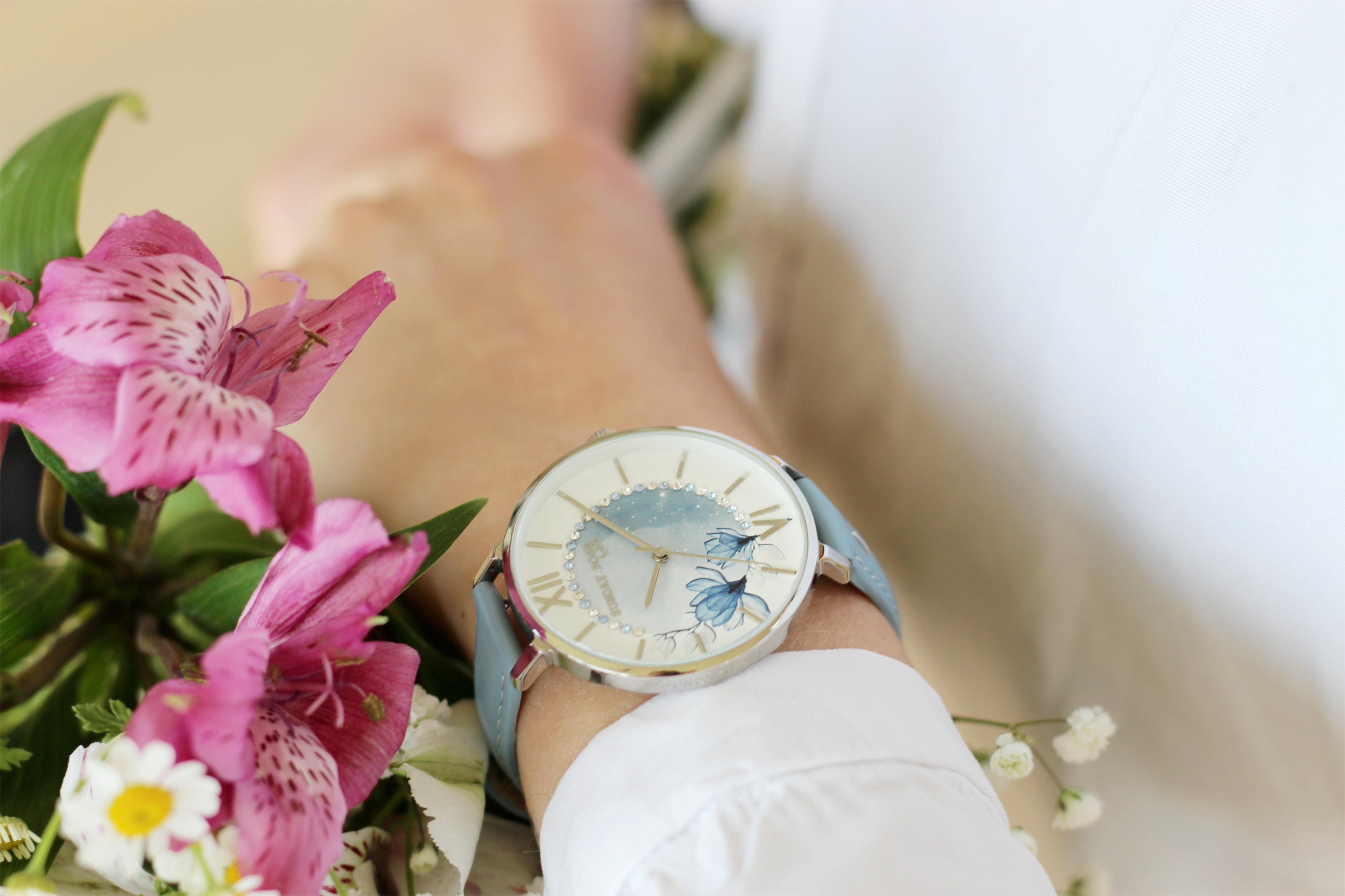 • Funkce a popis:Čas, Japonský strojek – Miyota 2035, číselník zdobí něžné květiny a krystaly Swarovski