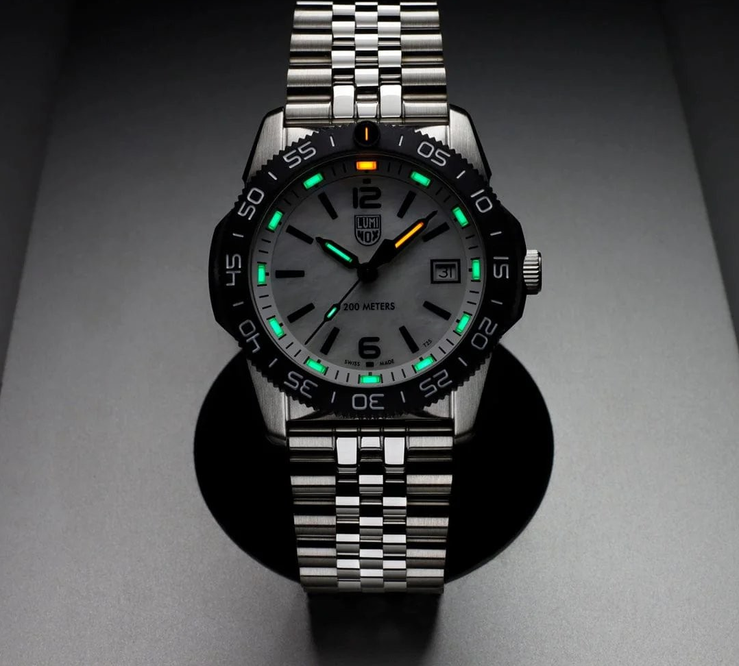 Luminox Pacific Diver 3120M Series XS.3126M.1 jsou kompaktnější sportovní quartzové hodinky, které v rámci rodiny Pacific Diver přinášejí elegantnější 39mm provedení a současně velmi osobitý perleťový číselník. Pouzdro je vyrobeno z nerezové oceli 316L a má průměr 39 mm, což je rozměr, který na ruce působí vyváženě, pohodlně a současně stále dostatečně sportovně. Právě menší pouzdro je jedním z hlavních důvodů, proč tato reference osloví širší spektrum ...