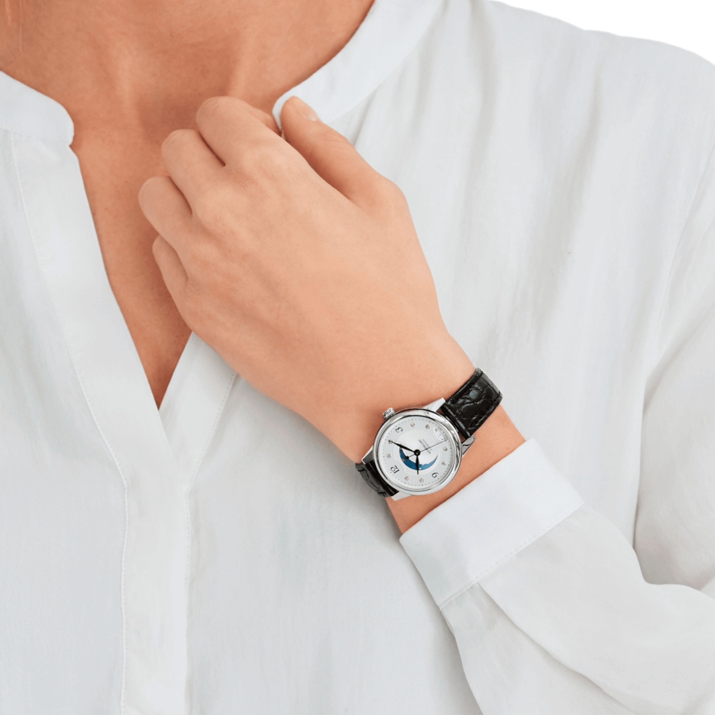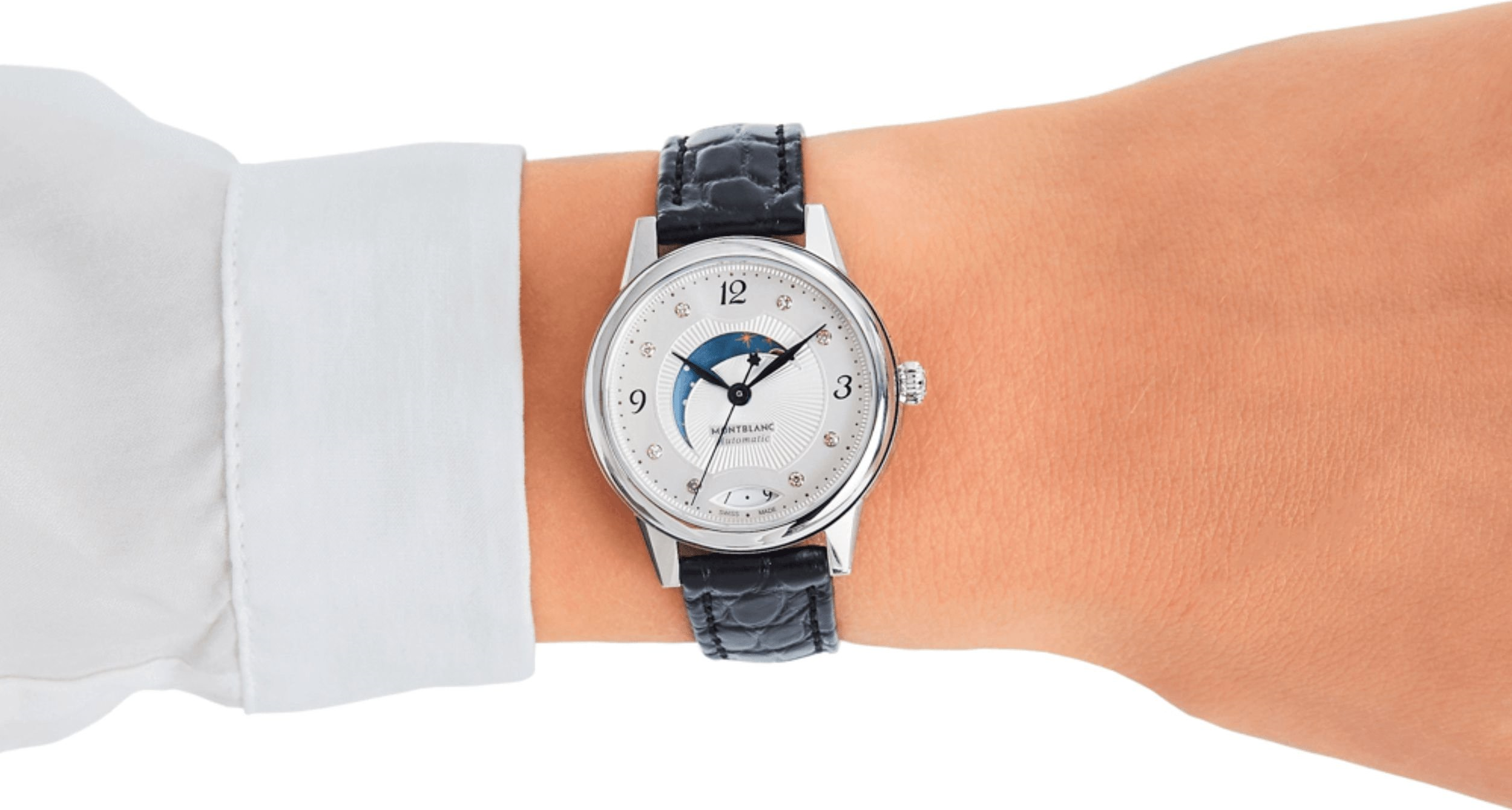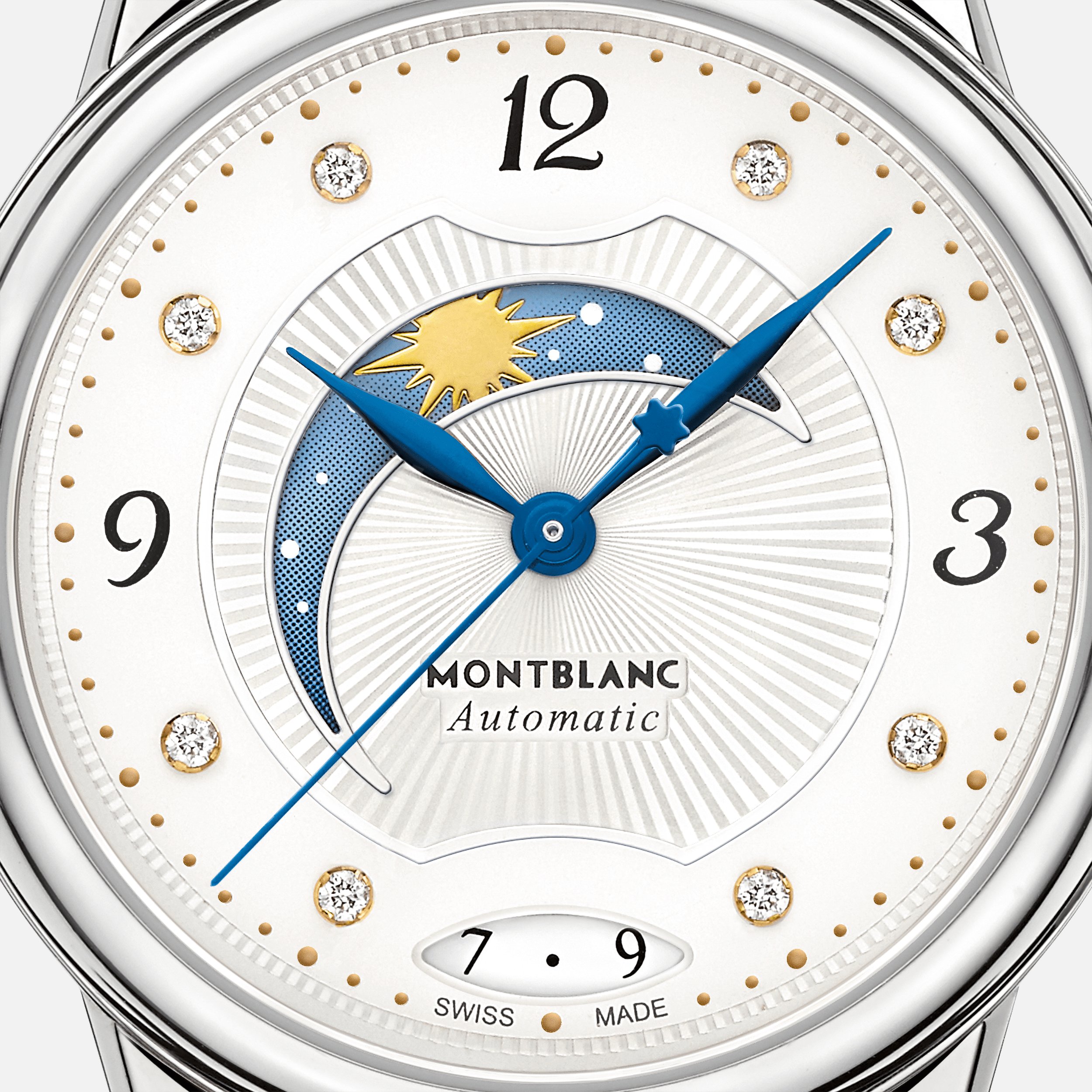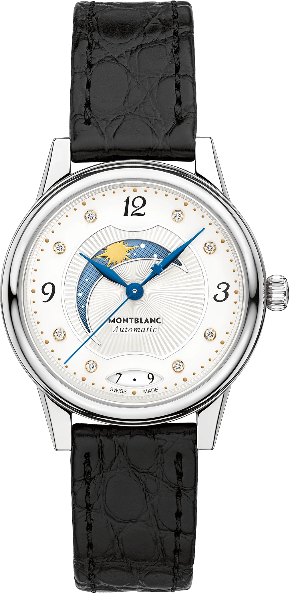 • Funkce a popis:Čas, okénko ve tvaru oka pro datum, půlměsícové okénko pro ukazatel dne a noci, strojek Swiss Montblanc MB 24.10 (základ Eta 2893-1) = rezerva chodu 42 hodin, polokmity setrvačky 28.800/h (4 Hz) = přesnost chodu (diference) 2 - 4 vteřiny denně,  krokové ústrojí ocel/kámen, 21 kamenů, automatický nátah (hodinky se natahují pohybem ruky) + ruční nátah (hodinky lze natáhnout/dotáhnout dle potřeby i ručně korunkou), rotor samonátahu disponuje funkcí oboustranného nátahu