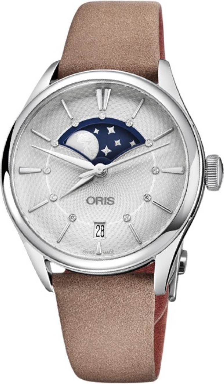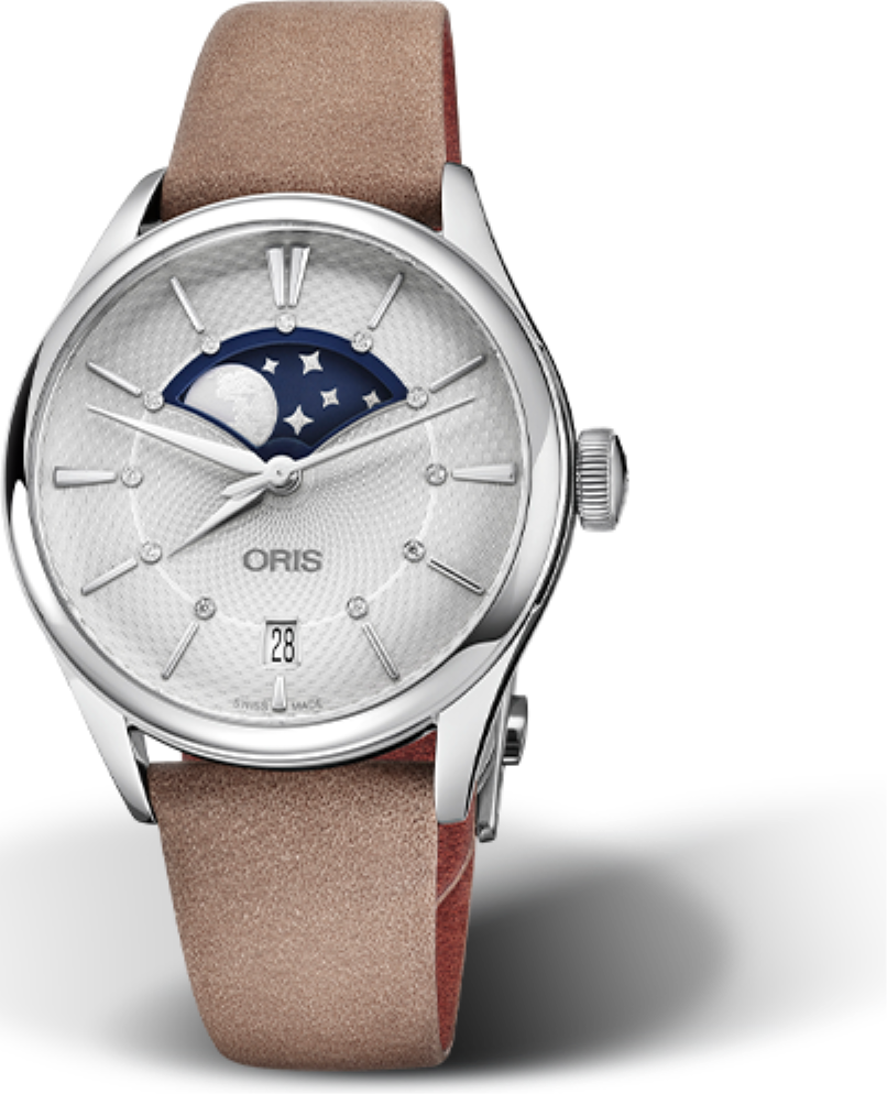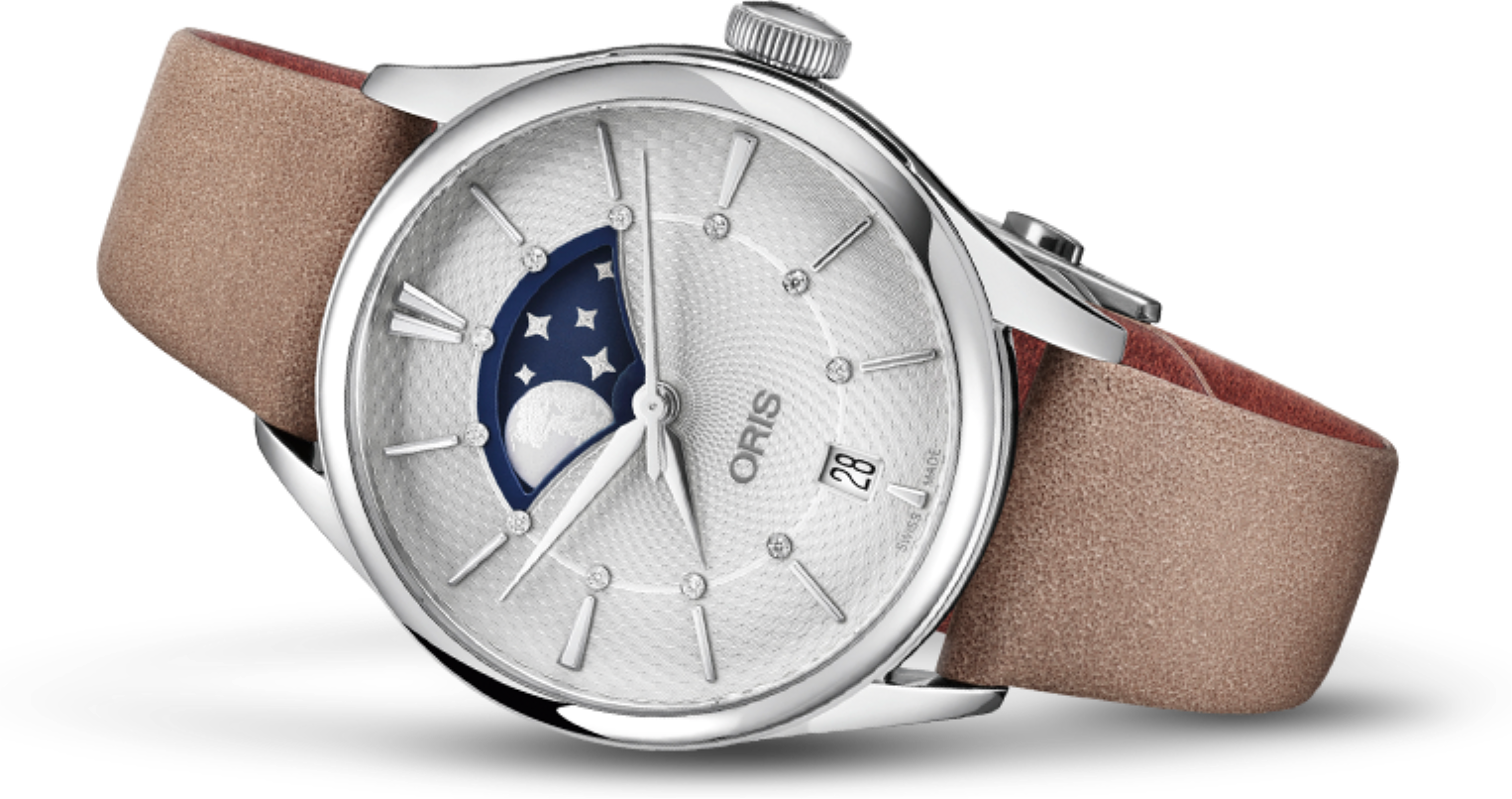 strojek hodinek Oris. Tento specifický znak jasně určuje, že jde o kvalitní