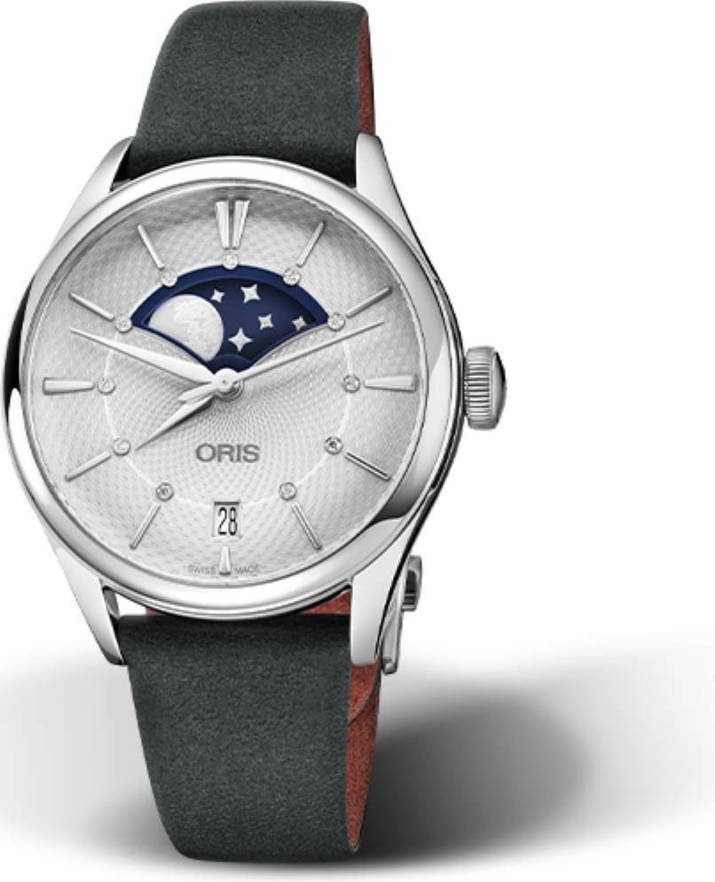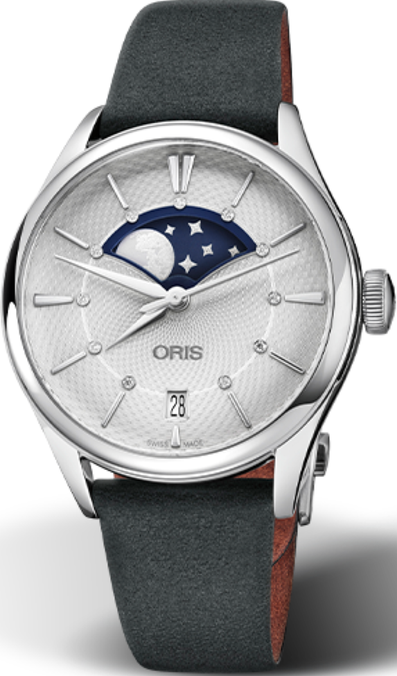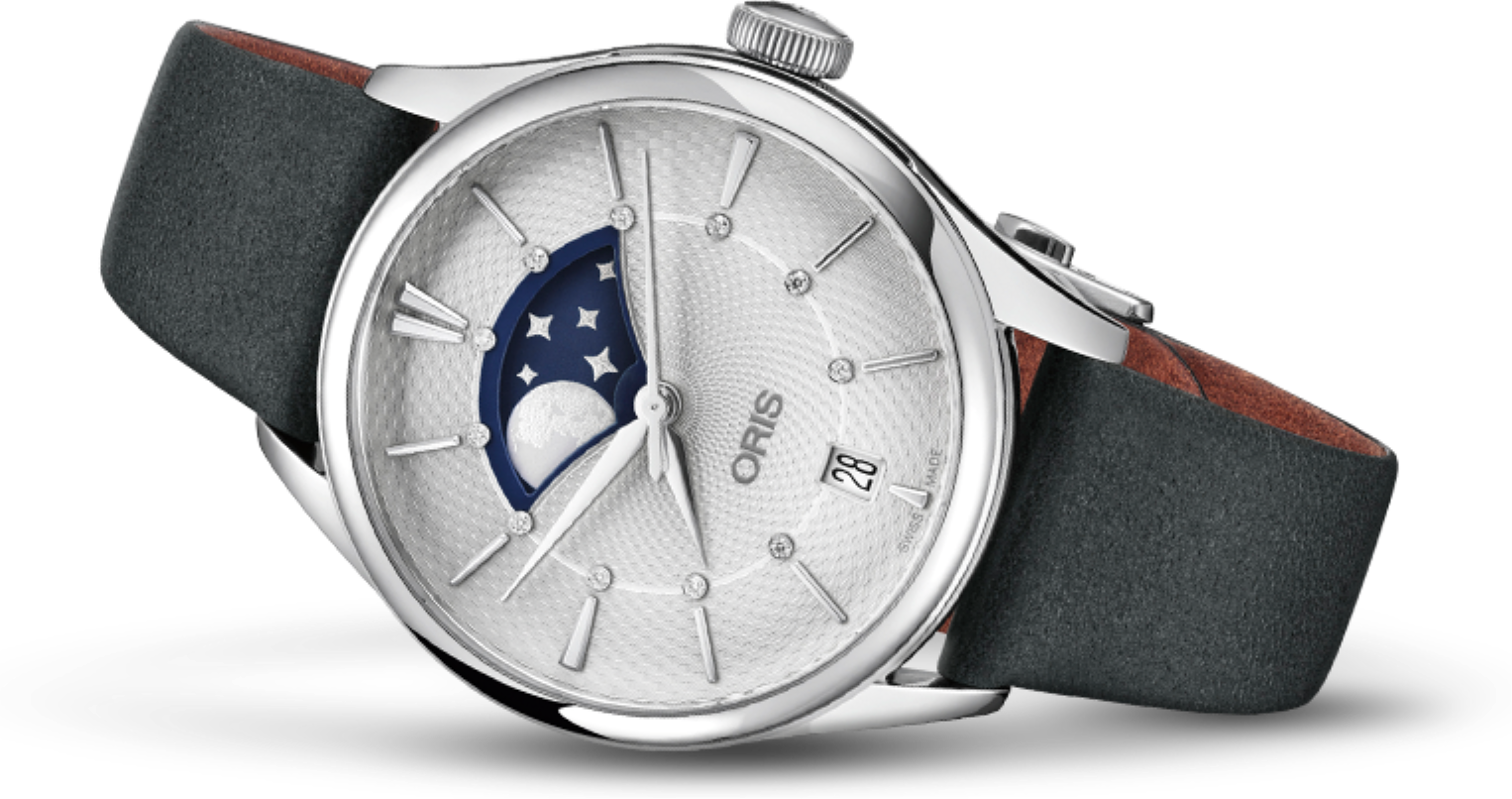 strojek hodinek Oris. Tento specifický znak jasně určuje, že jde o kvalitní