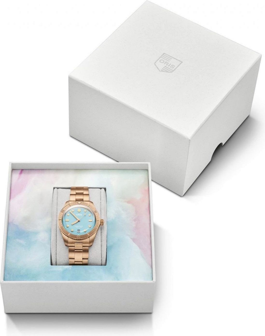 Oris Divers Sixty-Five ‘Cotton Candy’ 01 733 7771 3155-07 8 19 15 jsou charakterní švýcarské automatické potápěčské hodinky, které v bronzové řadě Cotton Candy představují technicky nejkompaktnější a materiálově nejsilnější podobu světle modré varianty. Tato reference kombinuje bronzové pouzdro, světle modrý číselník a plně bronzový náramek, což vytváří velmi atraktivní a nezaměnitelný celek. Oris zde pracuje s mimořádně ...
