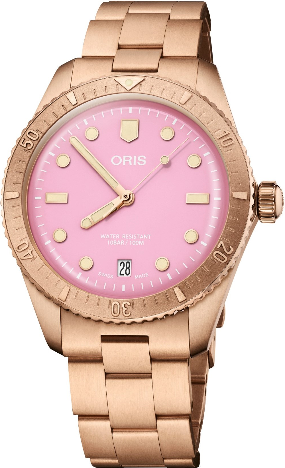Oris Divers Sixty-Five ‘Cotton Candy’ 01 733 7771 3158-07 8 19 15 jsou mimořádně výrazné švýcarské automatické potápěčské hodinky, které převádějí filozofii kolekce Cotton Candy do nejsilnější materiálové podoby. Tato reference kombinuje bronzové pouzdro, růžový číselník a plně bronzový náramek, takže působí velmi osobitě, živě a současně velmi sebevědomě. Oris zde dokazuje, že bronz nemusí být spojen jen se zemitými ...