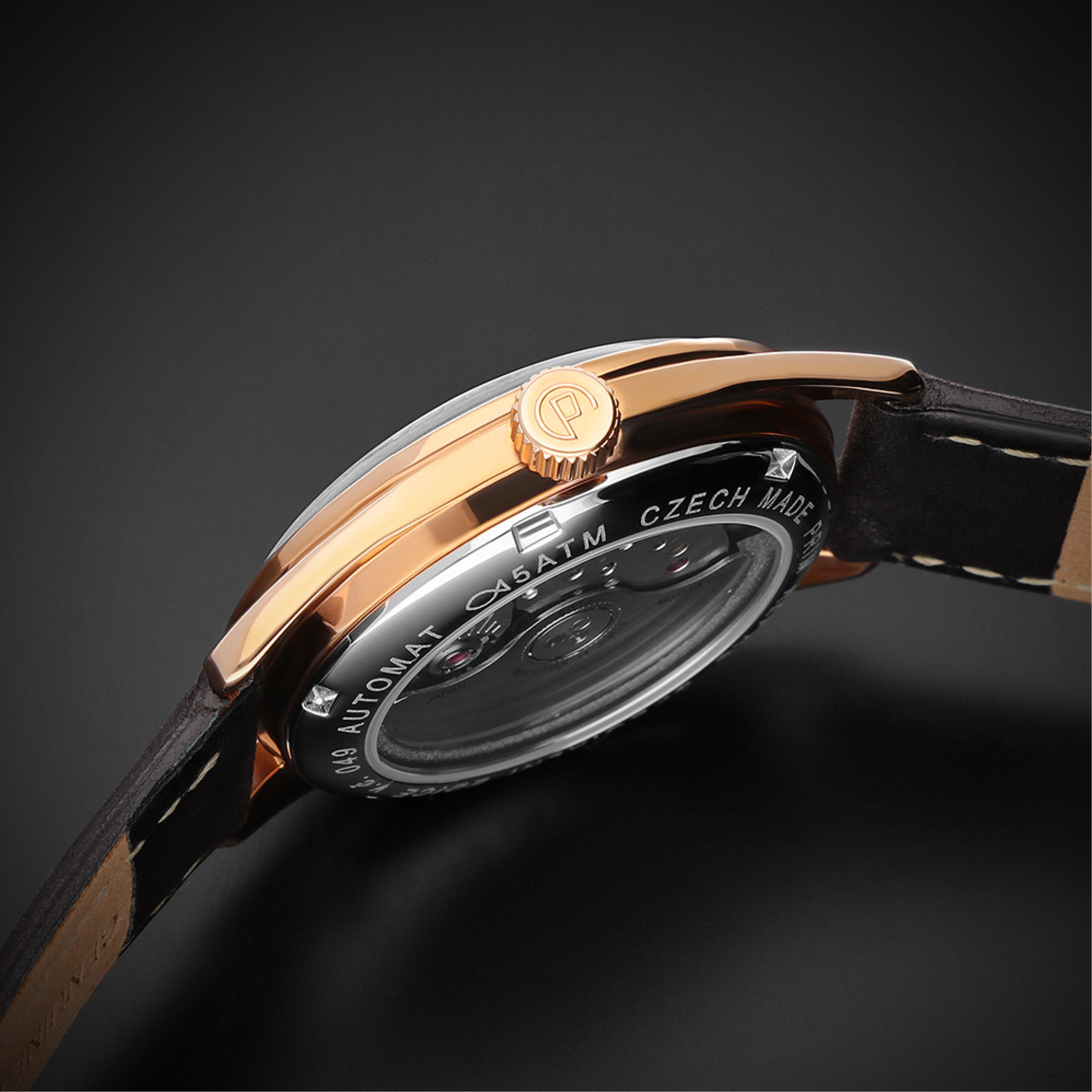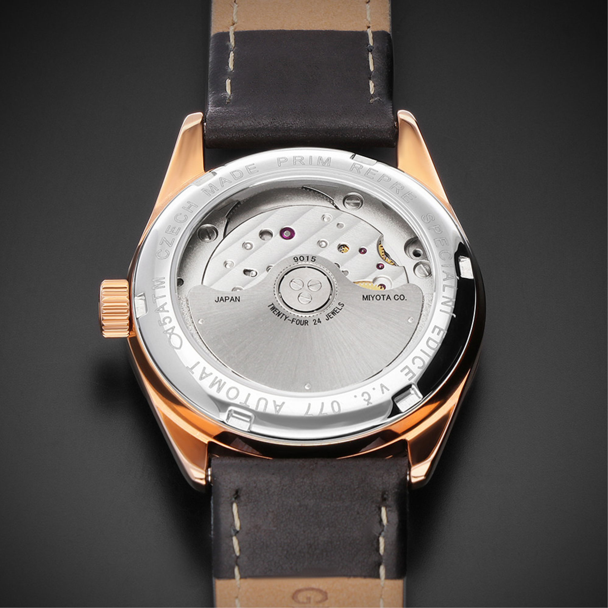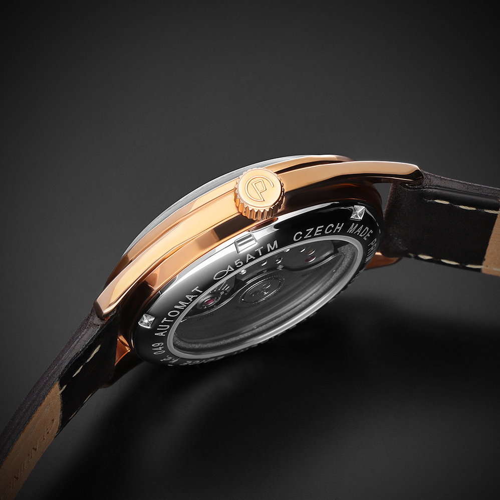 • Funkce a popis:Čas, datum, luminiscenční ručičky, mechanický strojek s automatickým nátahem  Premium Slim Miyota 9015 (24 kamenových uložení) = rezerva chodu až 42 hodin, polokmity setrvačky 28.800/h (3 Hz) = přesnost chodu (diference) 2 - 4 vteřin denně, automatický nátah (hodinky se natahují pohybem ruky) + ruční nátah (hodinky lze natáhnout/dotáhnout dle potřeby i ručně korunkou), průhledné zadní víčko pro náhled na strojek