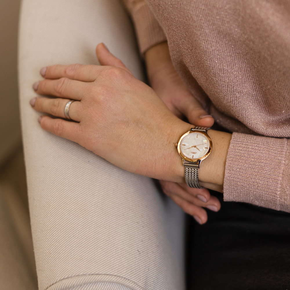 Quartz znamená latinsky krystal. Je tedy zřejmé, že hodinky nemohou být poháněny krystalem - jsou jím, jak již bylo zmíněno výše, řízeny pro maximální přesnost chodu. Krystal je Alfa a Omega přesnosti hodinek - respektive jeho kvalita. Čím je krystal kvalitnější, tím lépe usměrňuje frekvenci kmitů a impulsy jdoucí k magnetickému rotoru jsou stabilnější a chod hodinek je poté přesnější. Kvalita krystalu není úplně směrodatná pouze u hodinek rádiem řízených či hodinek řízených signálem GPS, jelikož tyto hodinky jsou každý den seřizovány signálem pro naprosto přesný čas (obvykle 2x denně). Časový rozdíl, který může vzniknout v mezidobí příjmu signálu je díky dnešním kvalitním krystalům tak nepatrný (cca. setiny vteřiny), že není možné tuto diferenci okem zaznamenat. U hodinek řízených krystalem je pohon zajišťován baterií - napájecím článkem nebo akumulátorem, který se dobíjí např. světlem. Baterie v hodinkách vydrží - dle typu elektroniky a celkově sestrojení strojku - 2 - 10 let. Je důležité vědět, že nejmenší spotřebu napájecího článku (baterie) mají hodinky digitální. Je to proto, protože zde není žádný velký spotřební přísun energie - nasvicuje se zde "pouze" tekutý krystal. Naopak největší spotřebu mají quartzové hodinky v případě zapnutí ručkového chronografu, kdy spolu s časem nám hodinky stopují. Zde je odběr baterie podstatně vyšší, nedoporučuje se tedy mít stále chronograf akční - pouze... (číst více)