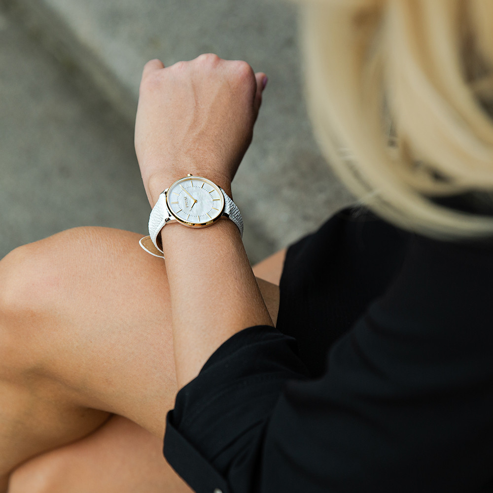 • Funkce a popis:Čas, švýcarský quartzový strojek Ronda 763, slim pouzdro, perleťový číselník