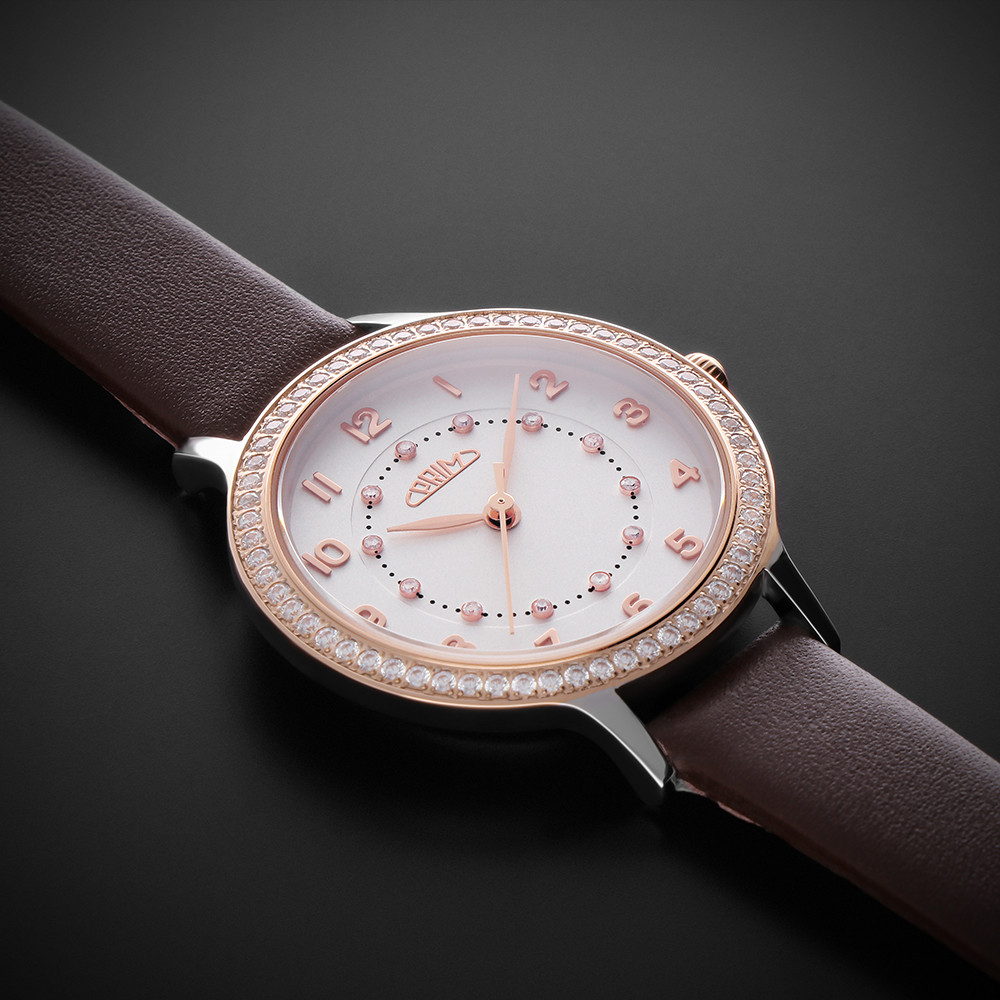 • Funkce a popis:Čas, kvalitní quartzový strojek - kalibr GL30, čísla s 3D efektem – vystouplá z číselníku, číselník zdobený diamanty a luneta zdobená zirkony