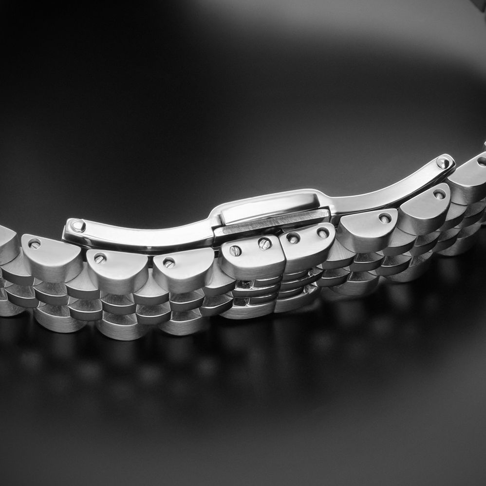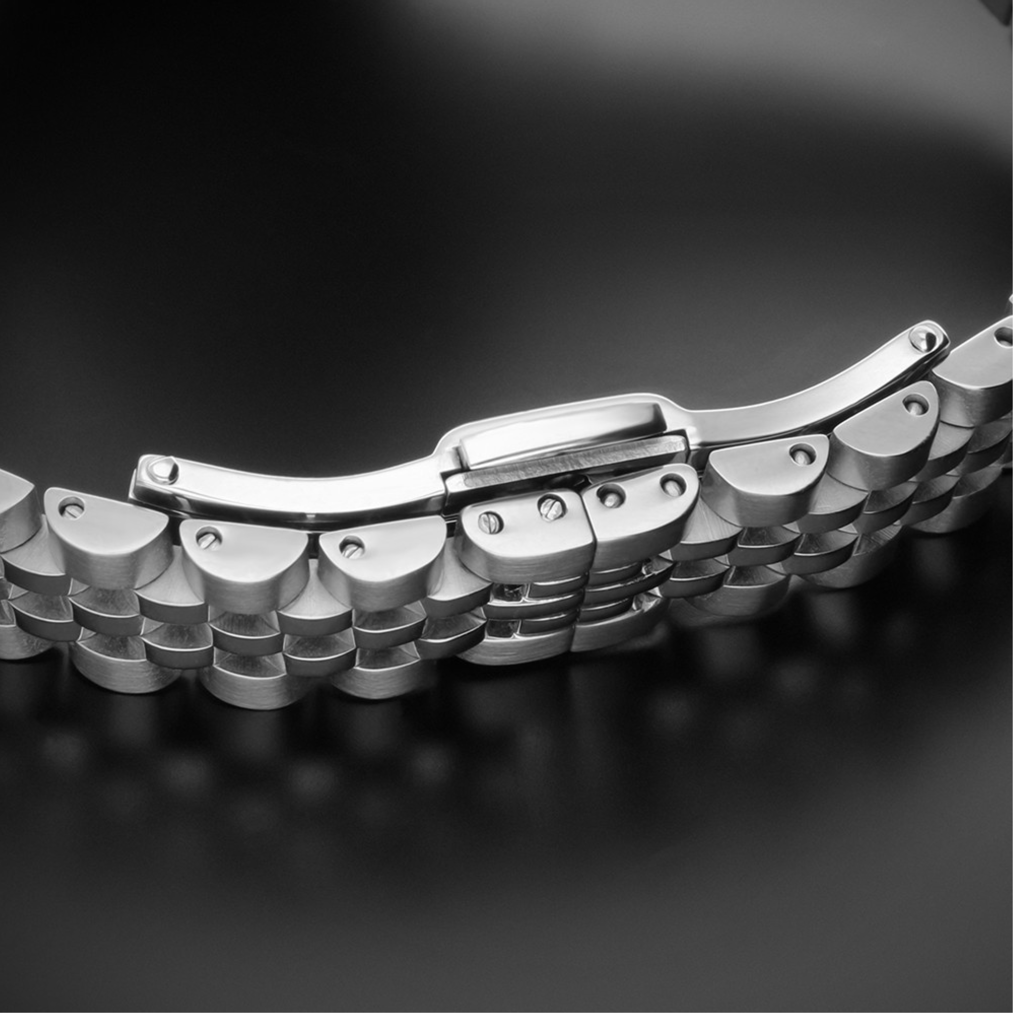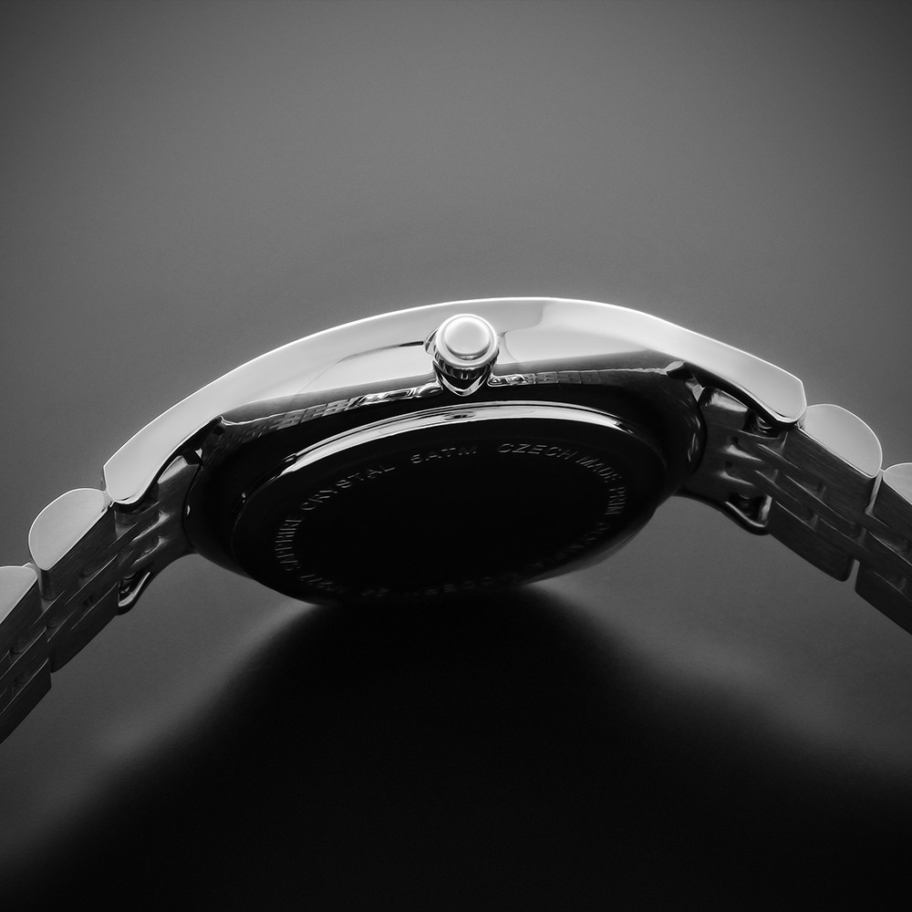 Quartz znamená latinsky krystal. Je tedy zřejmé, že hodinky nemohou být poháněny krystalem - jsou jím, jak již bylo zmíněno výše, řízeny pro maximální přesnost chodu. Krystal je Alfa a Omega přesnosti hodinek - respektive jeho kvalita. Čím je krystal kvalitnější, tím lépe usměrňuje frekvenci kmitů a impulsy jdoucí k magnetickému rotoru jsou stabilnější a chod hodinek je poté přesnější. Kvalita krystalu není úplně směrodatná pouze u hodinek rádiem řízených či hodinek řízených signálem GPS, jelikož tyto hodinky jsou každý den seřizovány signálem pro naprosto přesný čas (obvykle 2x denně). Časový rozdíl, který může vzniknout v mezidobí příjmu signálu je díky dnešním kvalitním krystalům tak nepatrný (cca. setiny vteřiny), že není možné tuto diferenci okem zaznamenat. U hodinek řízených krystalem je pohon zajišťován baterií - napájecím článkem nebo akumulátorem, který se dobíjí např. světlem. Baterie v hodinkách vydrží - dle typu elektroniky a celkově sestrojení strojku - 2 - 10 let. Je důležité vědět, že nejmenší spotřebu napájecího článku (baterie) mají hodinky digitální. Je to proto, protože zde není žádný velký spotřební přísun energie - nasvicuje se zde "pouze" tekutý krystal. Naopak největší spotřebu mají quartzové hodinky v případě zapnutí ručkového chronografu, kdy spolu s časem nám hodinky stopují. Zde je odběr baterie podstatně vyšší, nedoporučuje se tedy mít stále chronograf akční - pouze... (číst více)