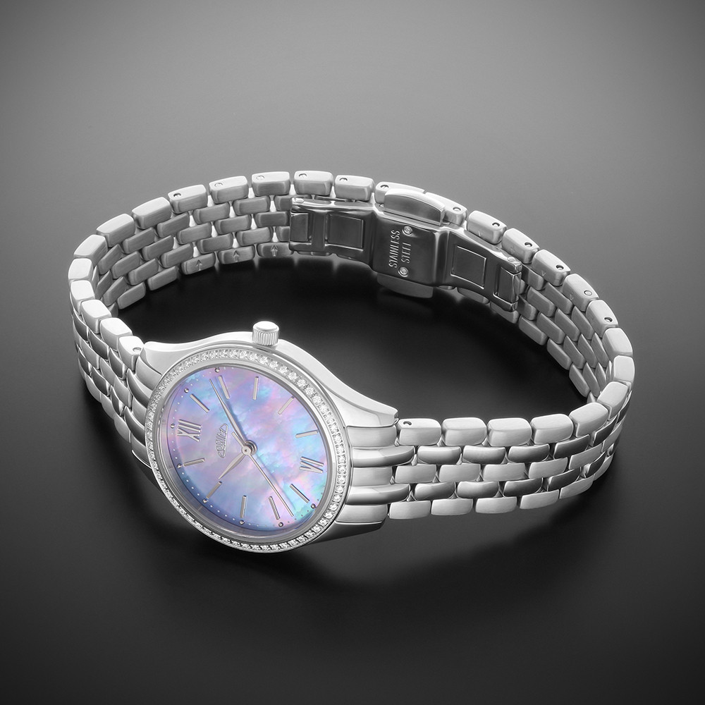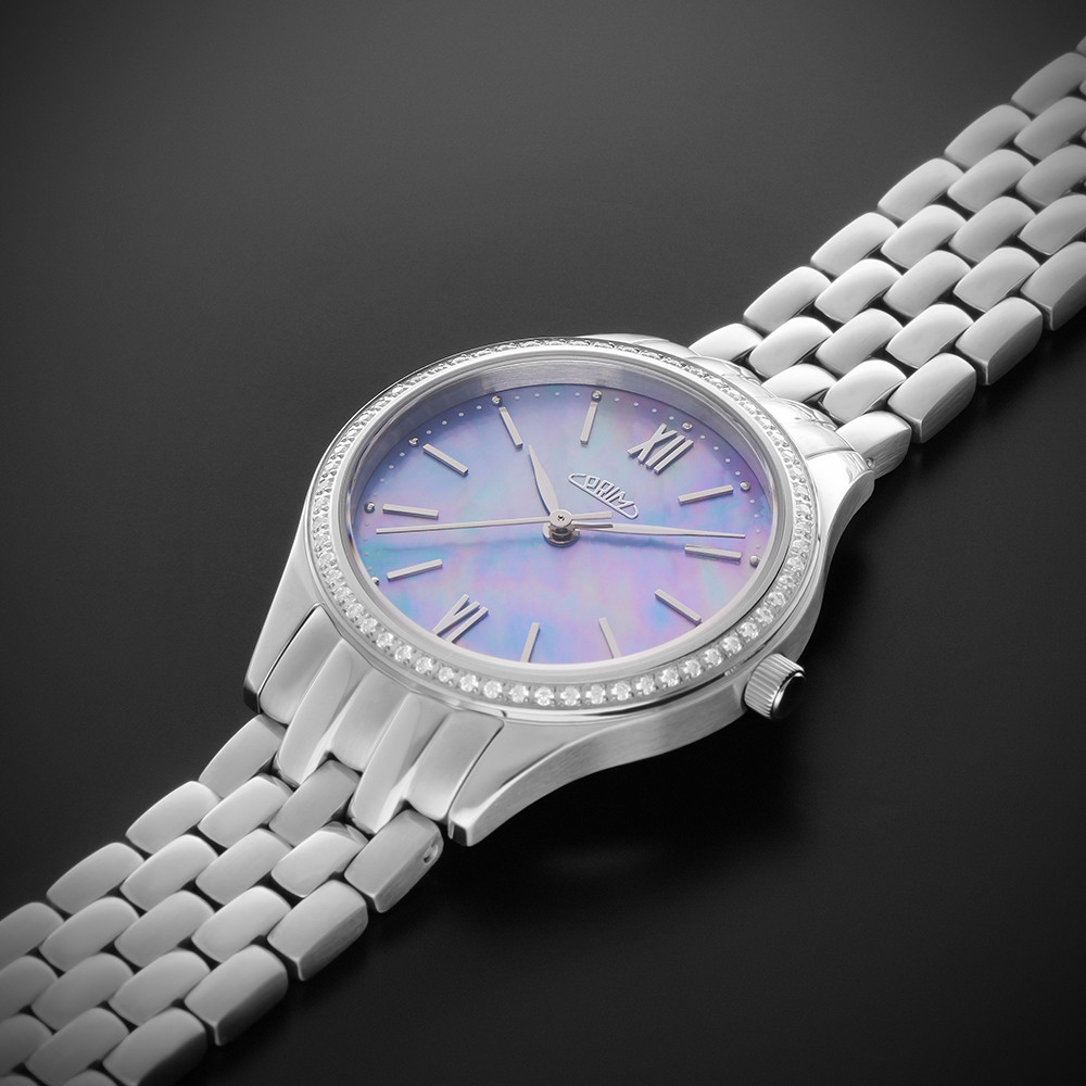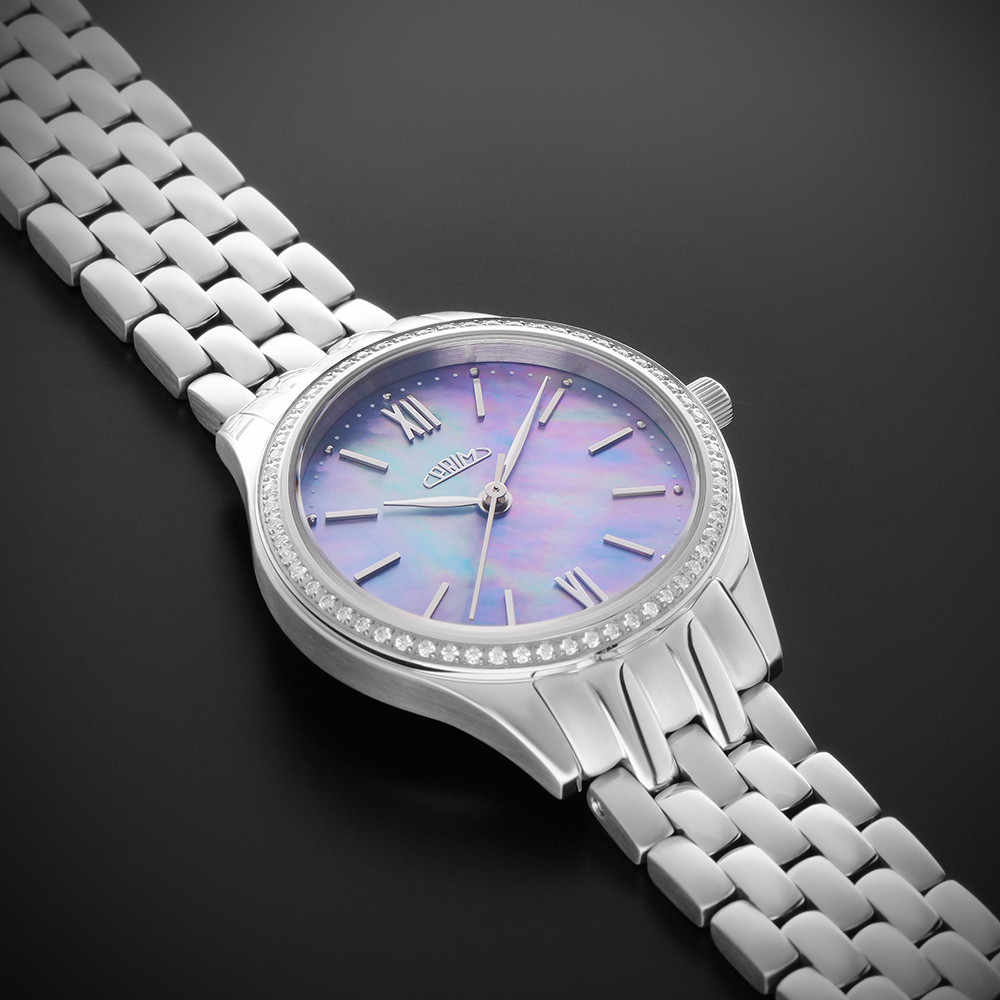 Dámské společenské hodinky PRIM Lyra jsou vyrobeny z ušlechtilé oceli 316L. Voděodolnost 5 ATM zaručuje odolnost proti vodě při běžném používání. Elegantní perleťový číselník osazený fasovanými indexy s jemným tištěným minutovým čítačem. Safírové sklo s antitouch a antireflektivní vrstvou je u tohoto dámského modelu samozřejmostí. Tyto hodinky jsou dodávány v krabičce se záručním listem.