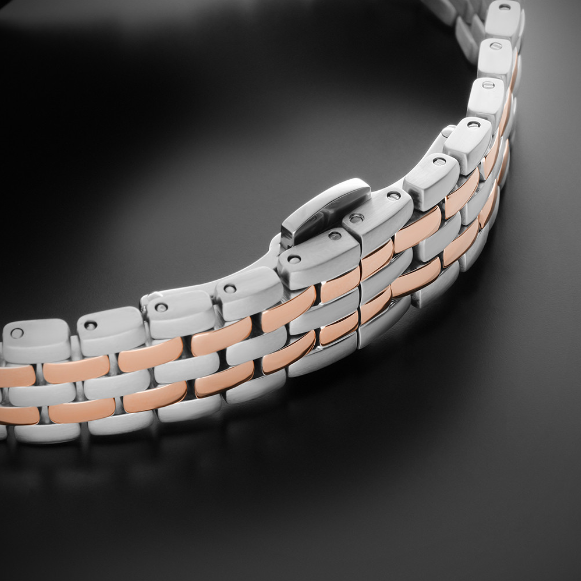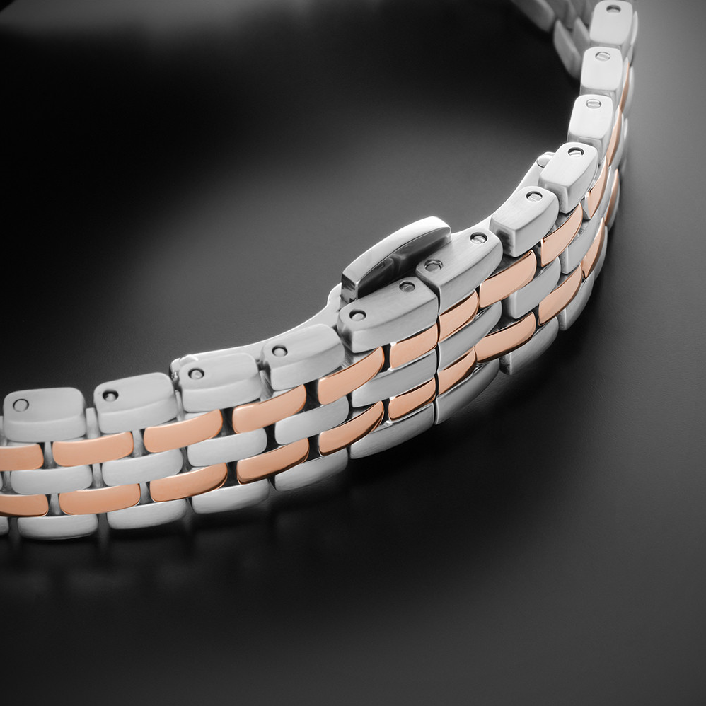 Quartz znamená latinsky krystal. Je tedy zřejmé, že hodinky nemohou být poháněny krystalem - jsou jím, jak již bylo zmíněno výše, řízeny pro maximální přesnost chodu. Krystal je Alfa a Omega přesnosti hodinek - respektive jeho kvalita. Čím je krystal kvalitnější, tím lépe usměrňuje frekvenci kmitů a impulsy jdoucí k magnetickému rotoru jsou stabilnější a chod hodinek je poté přesnější. Kvalita krystalu není úplně směrodatná pouze u hodinek rádiem řízených či hodinek řízených signálem GPS, jelikož tyto hodinky jsou každý den seřizovány signálem pro naprosto přesný čas (obvykle 2x denně). Časový rozdíl, který může vzniknout v mezidobí příjmu signálu je díky dnešním kvalitním krystalům tak nepatrný (cca. setiny vteřiny), že není možné tuto diferenci okem zaznamenat. U hodinek řízených krystalem je pohon zajišťován baterií - napájecím článkem nebo akumulátorem, který se dobíjí např. světlem. Baterie v hodinkách vydrží - dle typu elektroniky a celkově sestrojení strojku - 2 - 10 let. Je důležité vědět, že nejmenší spotřebu napájecího článku (baterie) mají hodinky digitální. Je to proto, protože zde není žádný velký spotřební přísun energie - nasvicuje se zde "pouze" tekutý krystal. Naopak největší spotřebu mají quartzové hodinky v případě zapnutí ručkového chronografu, kdy spolu s časem nám hodinky stopují. Zde je odběr baterie podstatně vyšší, nedoporučuje se tedy mít stále chronograf akční - pouze... (číst více)