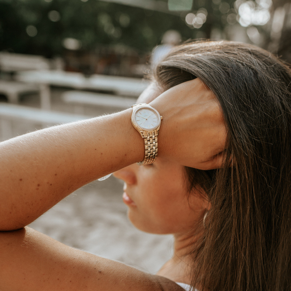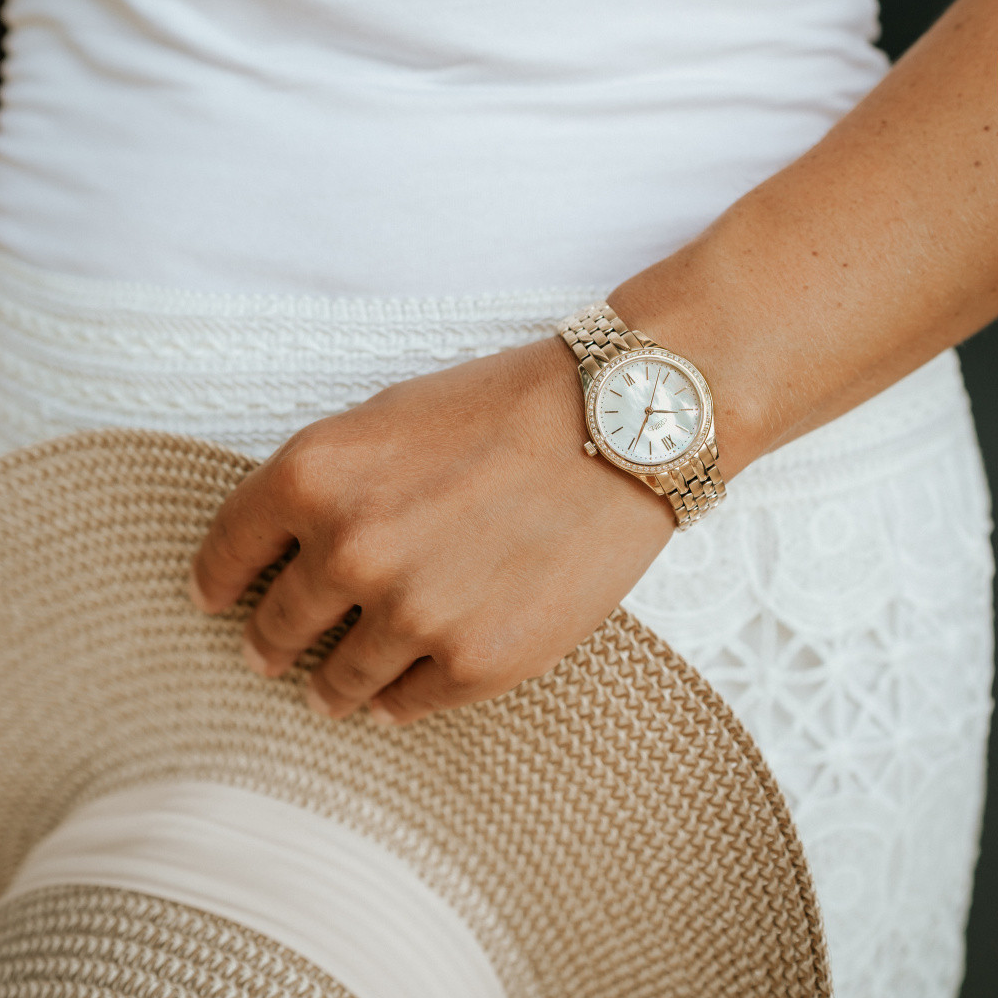 Quartz znamená latinsky krystal. Je tedy zřejmé, že hodinky nemohou být poháněny krystalem - jsou jím, jak již bylo zmíněno výše, řízeny pro maximální přesnost chodu. Krystal je Alfa a Omega přesnosti hodinek - respektive jeho kvalita. Čím je krystal kvalitnější, tím lépe usměrňuje frekvenci kmitů a impulsy jdoucí k magnetickému rotoru jsou stabilnější a chod hodinek je poté přesnější. Kvalita krystalu není úplně směrodatná pouze u hodinek rádiem řízených či hodinek řízených signálem GPS, jelikož tyto hodinky jsou každý den seřizovány signálem pro naprosto přesný čas (obvykle 2x denně). Časový rozdíl, který může vzniknout v mezidobí příjmu signálu je díky dnešním kvalitním krystalům tak nepatrný (cca. setiny vteřiny), že není možné tuto diferenci okem zaznamenat. U hodinek řízených krystalem je pohon zajišťován baterií - napájecím článkem nebo akumulátorem, který se dobíjí např. světlem. Baterie v hodinkách vydrží - dle typu elektroniky a celkově sestrojení strojku - 2 - 10 let. Je důležité vědět, že nejmenší spotřebu napájecího článku (baterie) mají hodinky digitální. Je to proto, protože zde není žádný velký spotřební přísun energie - nasvicuje se zde "pouze" tekutý krystal. Naopak největší spotřebu mají quartzové hodinky v případě zapnutí ručkového chronografu, kdy spolu s časem nám hodinky stopují. Zde je odběr baterie podstatně vyšší, nedoporučuje se tedy mít stále chronograf akční - pouze... (číst více)