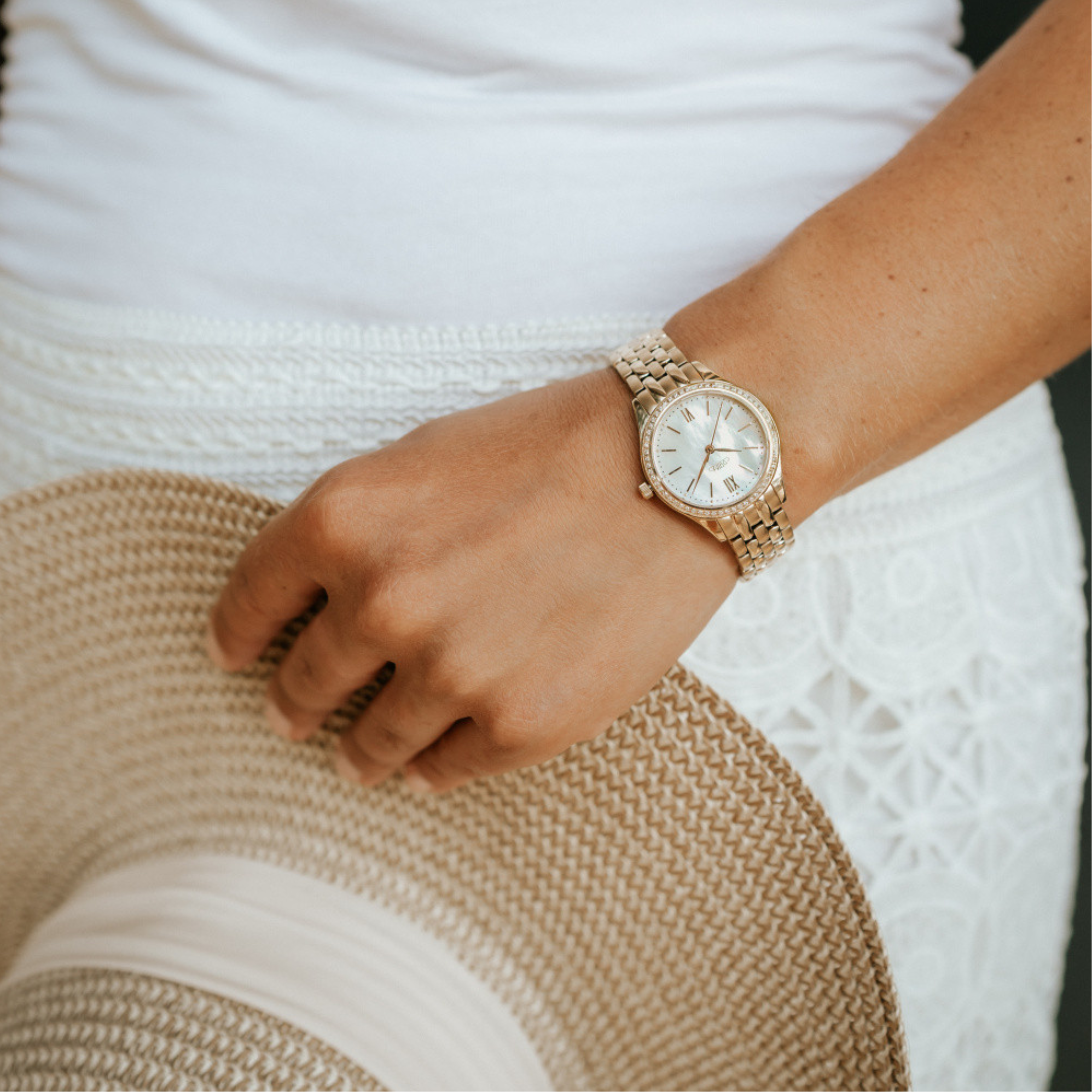 • Funkce a popis:Čas, quartzový strojek Miyota GL32, luneta osázená kamínky