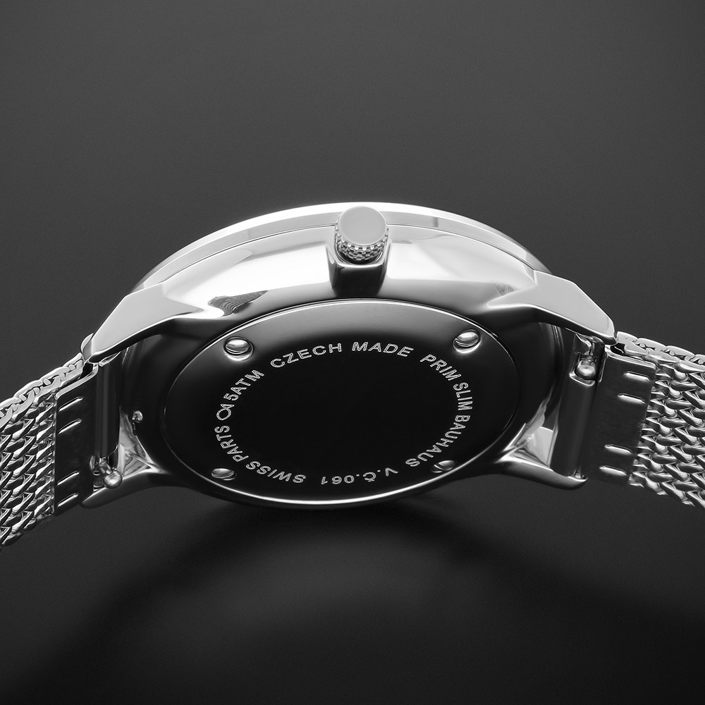Elegantní společenské hodinky z nové kolekce PRIM Slim Bauhaus, které spojují precizní zpracování a čistý design inspirovaný principy Bauhausu.