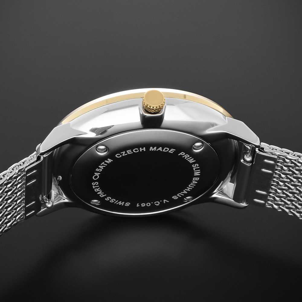 Elegantní společenské hodinky z nové kolekce PRIM Slim Bauhaus, které spojují precizní zpracování a čistý design inspirovaný principy Bauhausu.