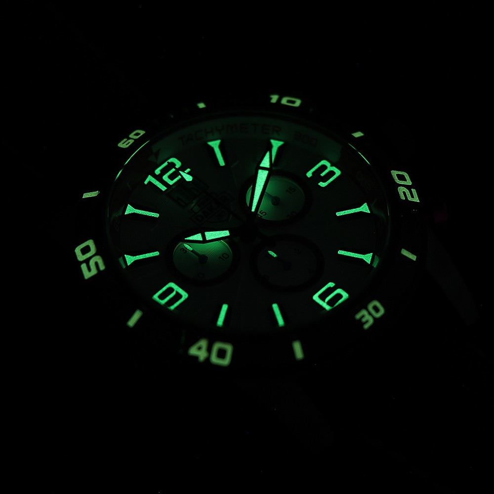 • Funkce a popis:Čas, velká datumovka, chronograf = stopky, tachymetr, šroubovací korunka, ručičky a indexy jsou opatřeny tenkou vrstvou luminiscenčního materiálu (materiál, který po krátkém nasvícení dlouhou dobu svítí, což je praktické za šera a v noci), quartzový strojek RONDA 5040.B