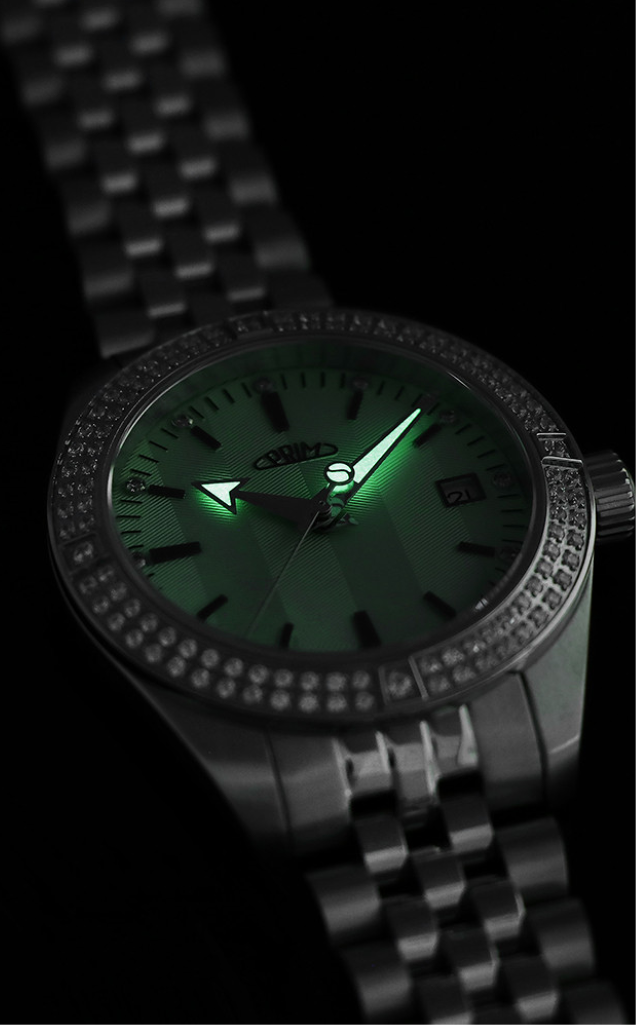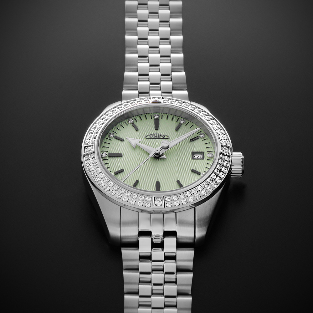 • Funkce a popis:Čas, datum, automatický japonský strojek Miyota 8315, 21 kamenů, rezerva chodu až 60 hodin, polokmity setrvačky 21.600/h (3 Hz) = přesnost chodu (diference) 3 - 5 vteřin denně, pouzdro doplňuje 112 kusů CNC fasovaných krystalů cubic zirconia