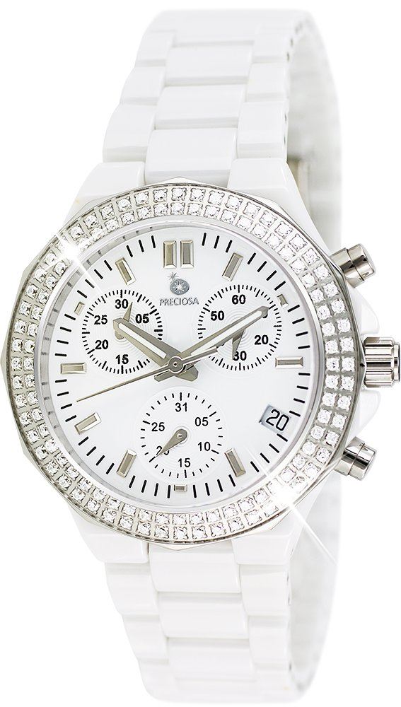 • Funkce a popis:Čas, datum, chronograf = stopky, svítící ručky a indexy, lunetu zdobí zirkony
