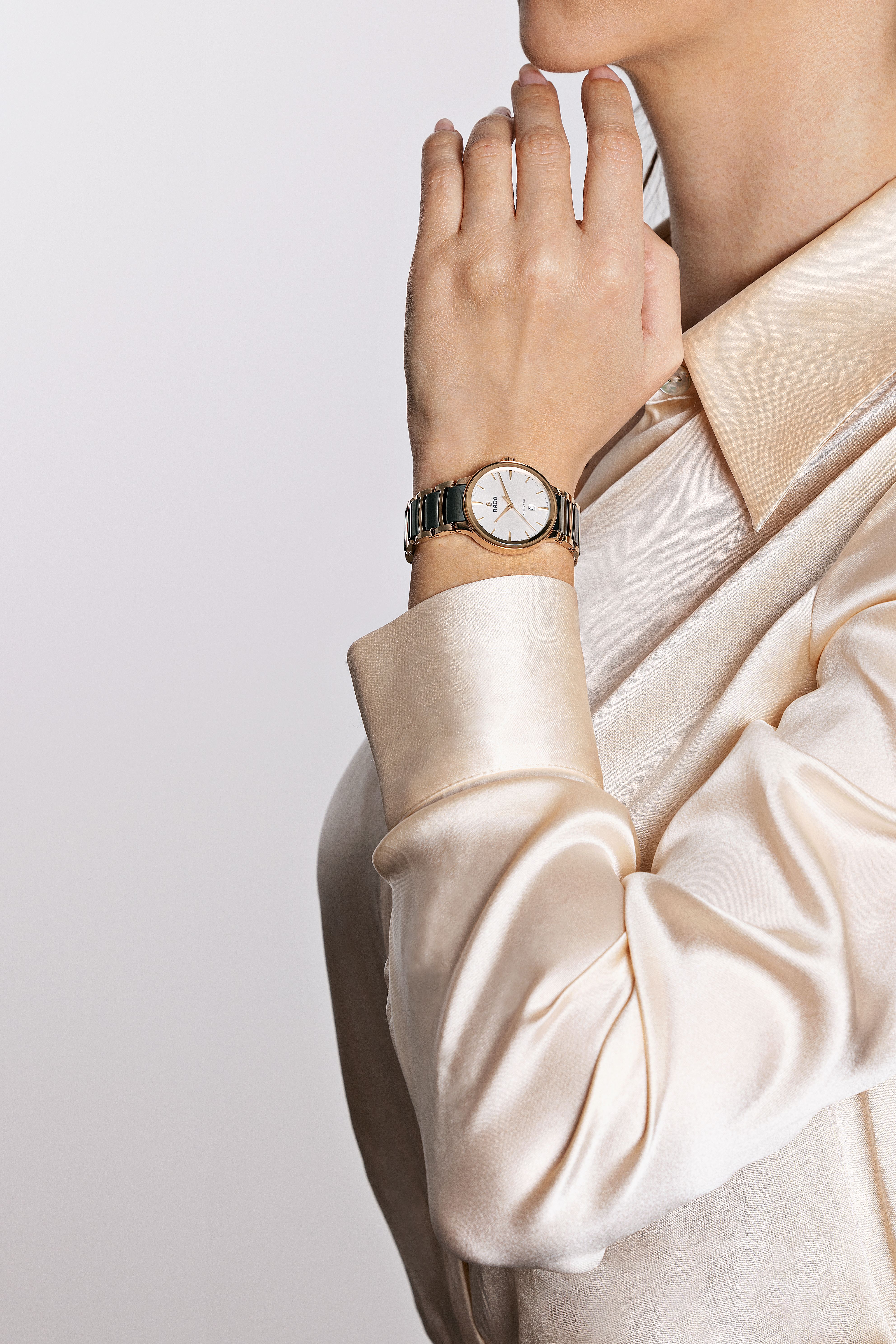 Kolekce Rado Centrix Automatic představuje nejlepší design hodinek Rado s použitím inovovaných materiálů a se silným smyslem pro styl. Tento nejnovější přírůstek R30019012 do švýcarské řady má pouzdro a náramek z leštěné nerezové oceli s PVD povlakem v barvě růžového zlata s plazmovými high-tech keramickými středními články. Bílý číselník s aplikovanými indexy v barvě růžového zlata dokonale ladí s ručkami v barvě růžového zlata. ...