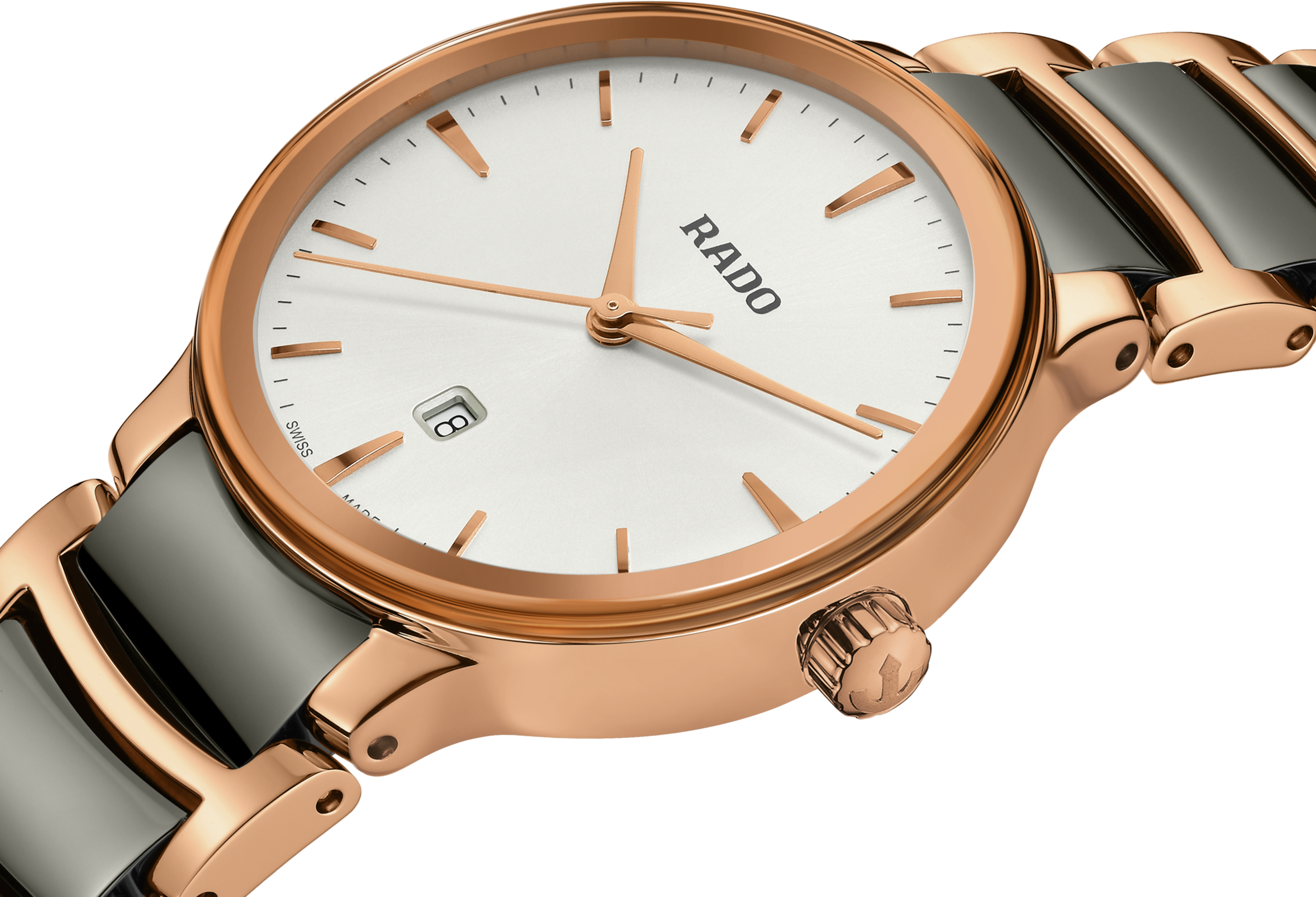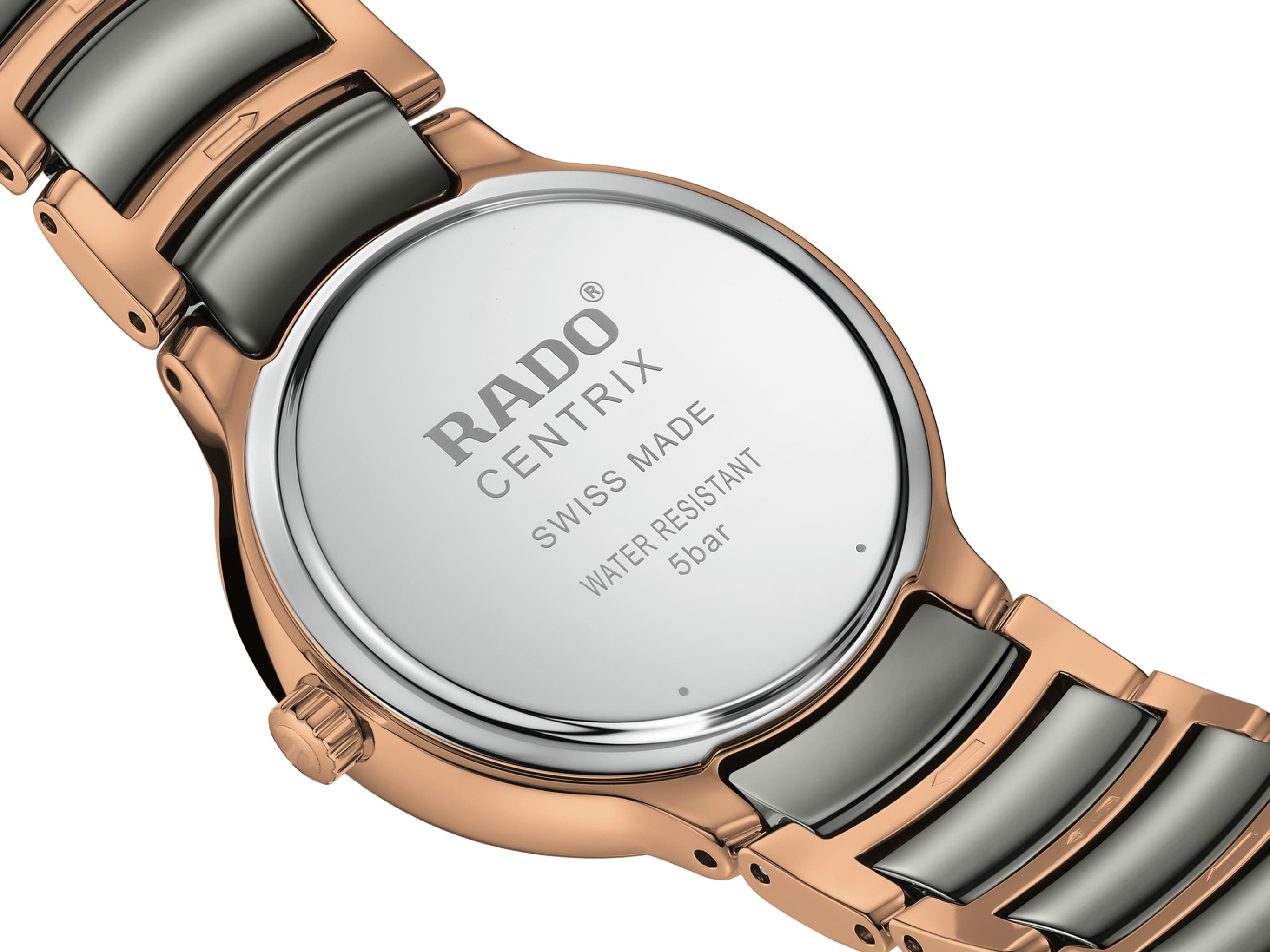 Klasický Centrix Quartz byl přepracován nejen technicky, ale i esteticky. Upravený model R30024012 má zaoblené safírové sklíčko, které zasahuje až k okraji, a zakřivené pouzdro splývající se zakřiveným okrajem krystalu. Celkový vzhled těchto ikonických hodinek dotvářejí upravené ouška pouzdra a náramek z leštěné nerezové oceli s PVD povlakem v barvě růžového zlata s plazmovými high-tech keramickými středními články.  ...