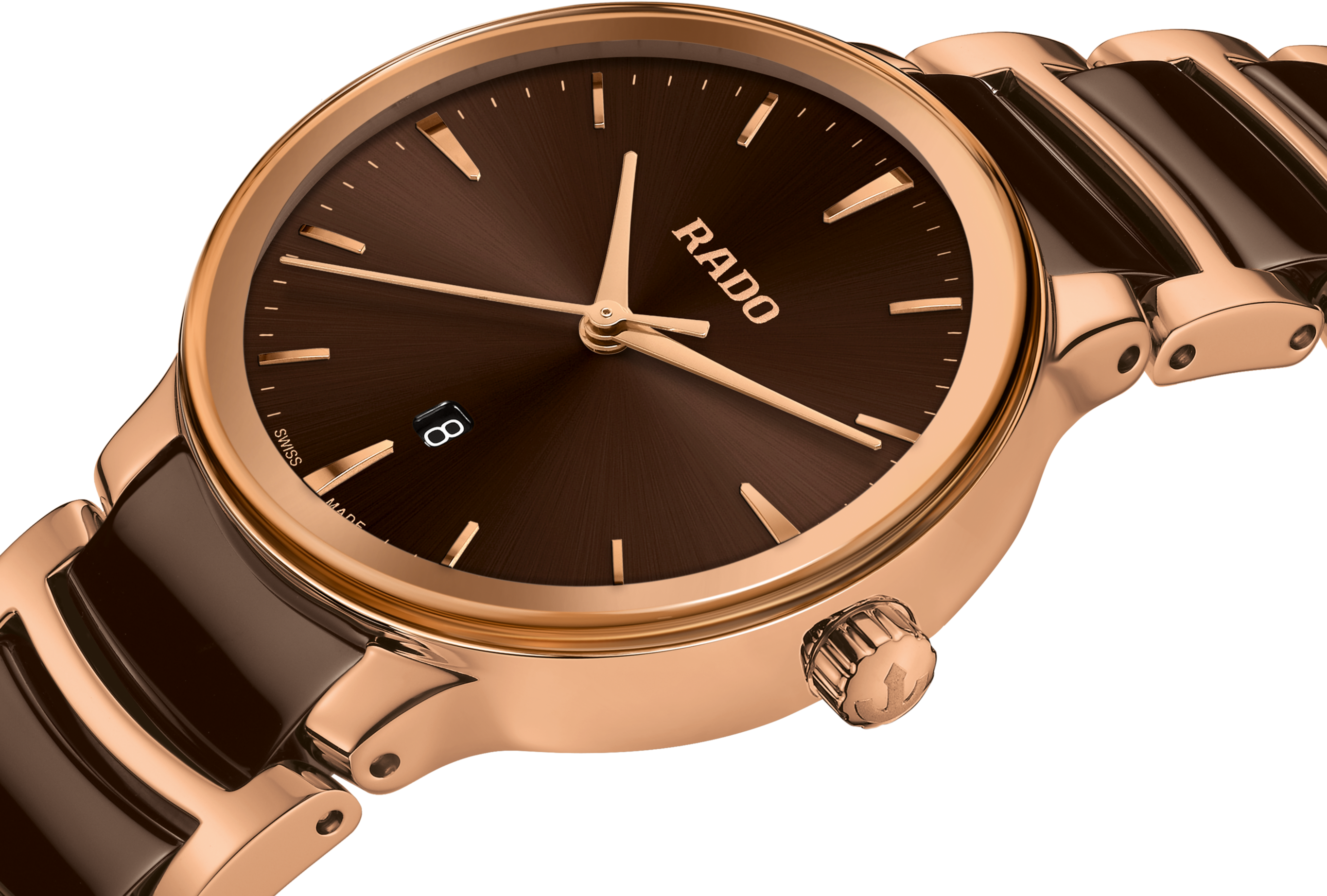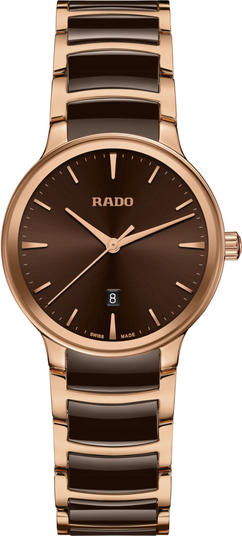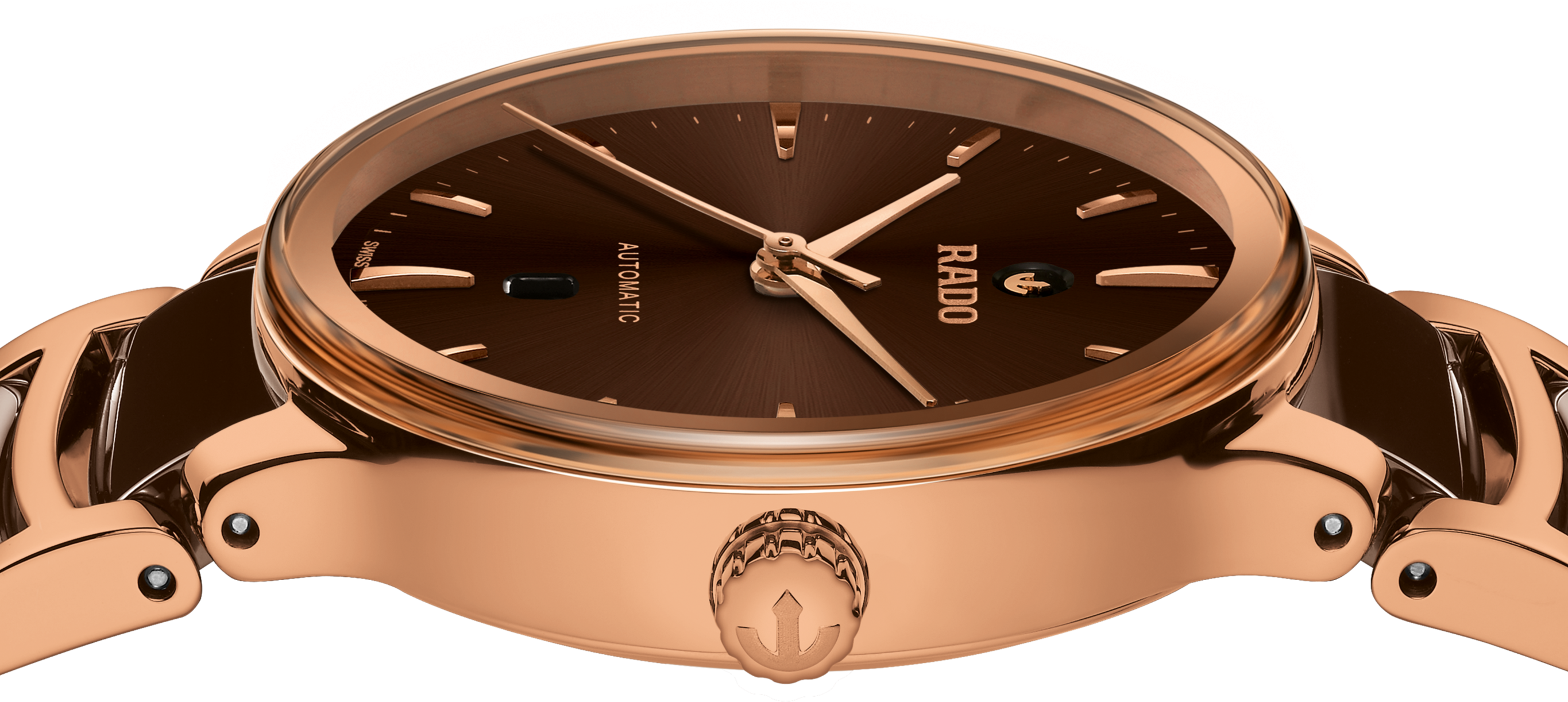 Klasický Centrix Quartz byl přepracován nejen technicky, ale i esteticky. Upravený model R30024302 má zaoblené safírové sklíčko, které zasahuje až k okraji, a zakřivené pouzdro splývající se zakřiveným okrajem krystalu. Celkový vzhled těchto ikonických hodinek dotvářejí upravené ouška pouzdra a náramek z leštěné nerezové oceli s PVD povlakem v barvě růžového zlata s hnědými high-tech keramickými středními články.  ...