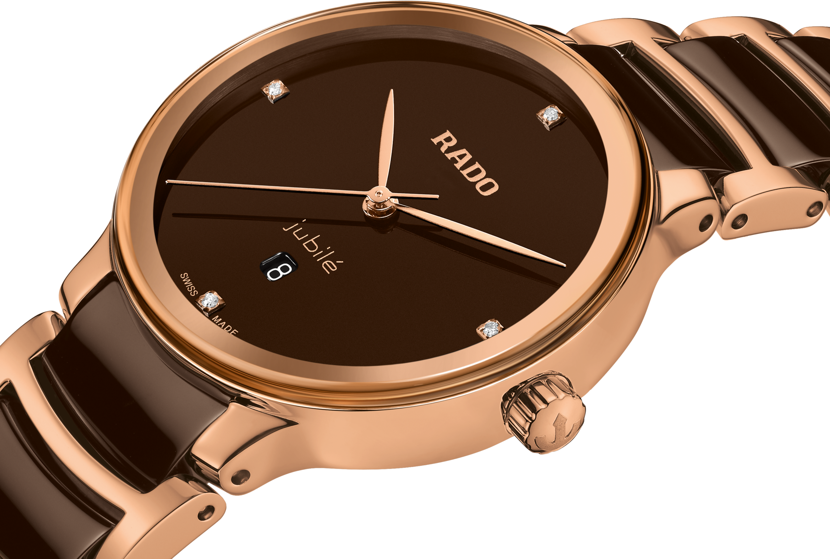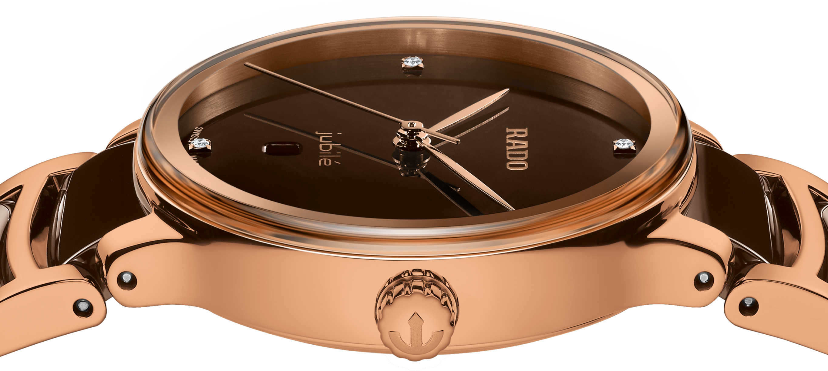 Klasické hodinky Centrix Quartz Diamonds byly přepracovány nejen technicky, ale i esteticky. Upravený model R30024712 má zaoblené safírové sklíčko, které zasahuje až k okraji, a zakřivené pouzdro splývající se zakřiveným okrajem krystalu. Celkový vzhled těchto ikonických hodinek dotvářejí upravené ouška pouzdra a náramek z leštěné nerezové oceli s PVD povlakem v barvě růžového zlata s hnědými high-tech keramickými středními články.  ...