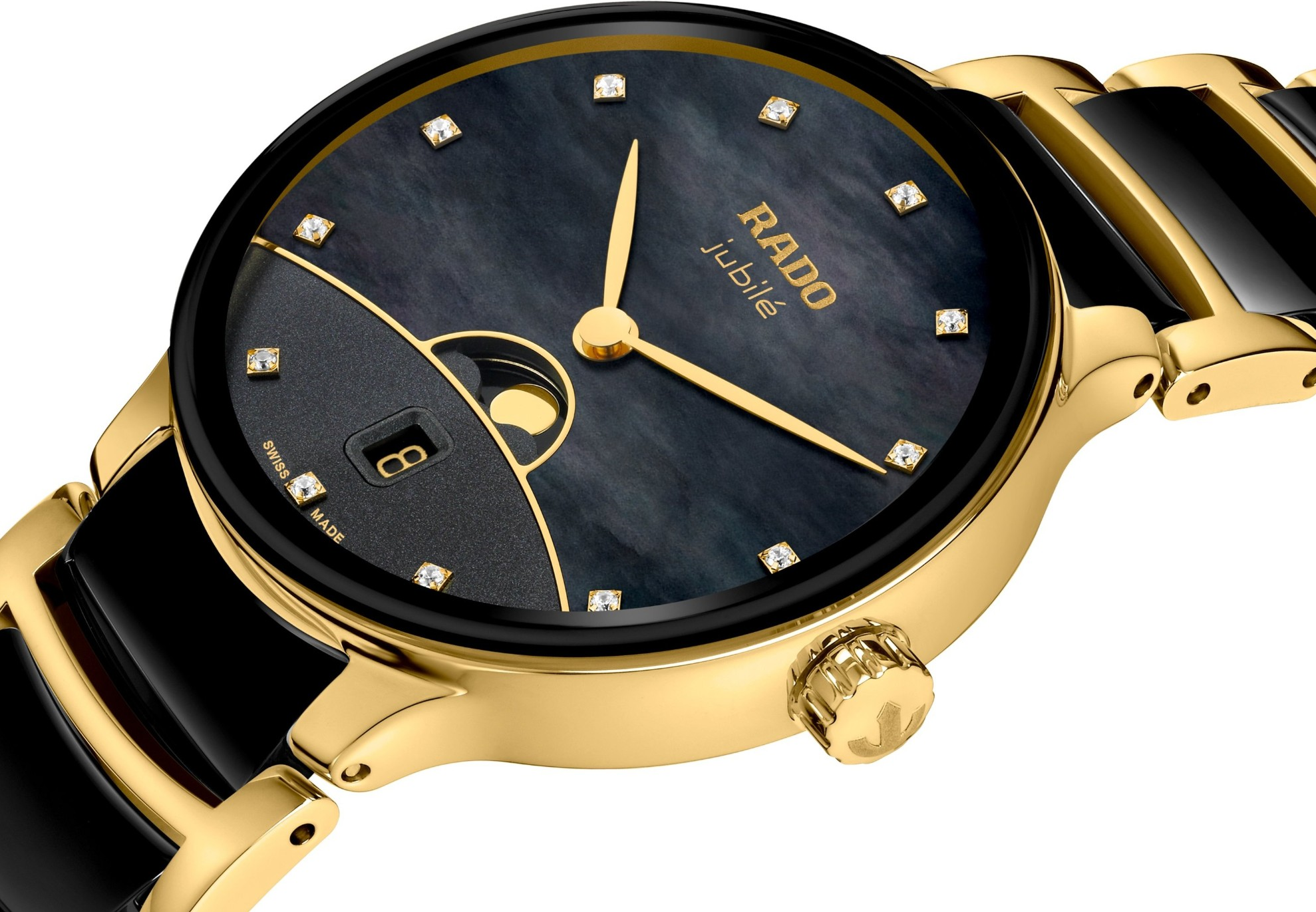 Rado Centrix Diamonds R30233942 jsou mimořádně elegantní švýcarské hodinky, které osloví především zákaznici hledající spojení jemného luxusu, moderně přepracované klasiky a vysoké každodenní praktičnosti. Tento model z řady Centrix Moonphase Diamonds působí velmi kultivovaně a už na první pohled zaujme poetickým zpracováním číselníku, černými keramickými články tahu a výraznými detaily ve žlutě zlatém tónu. Černý číselník nepůsobí obyčejně - Rado jej pojalo jako ...