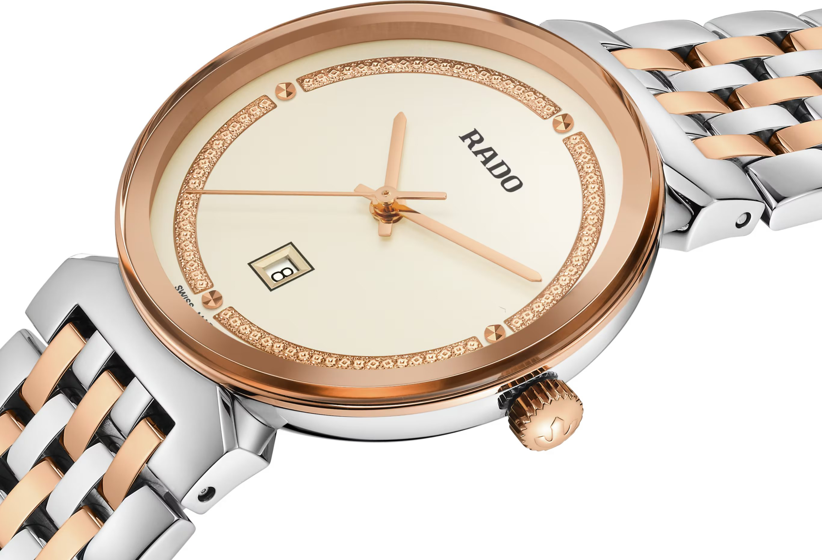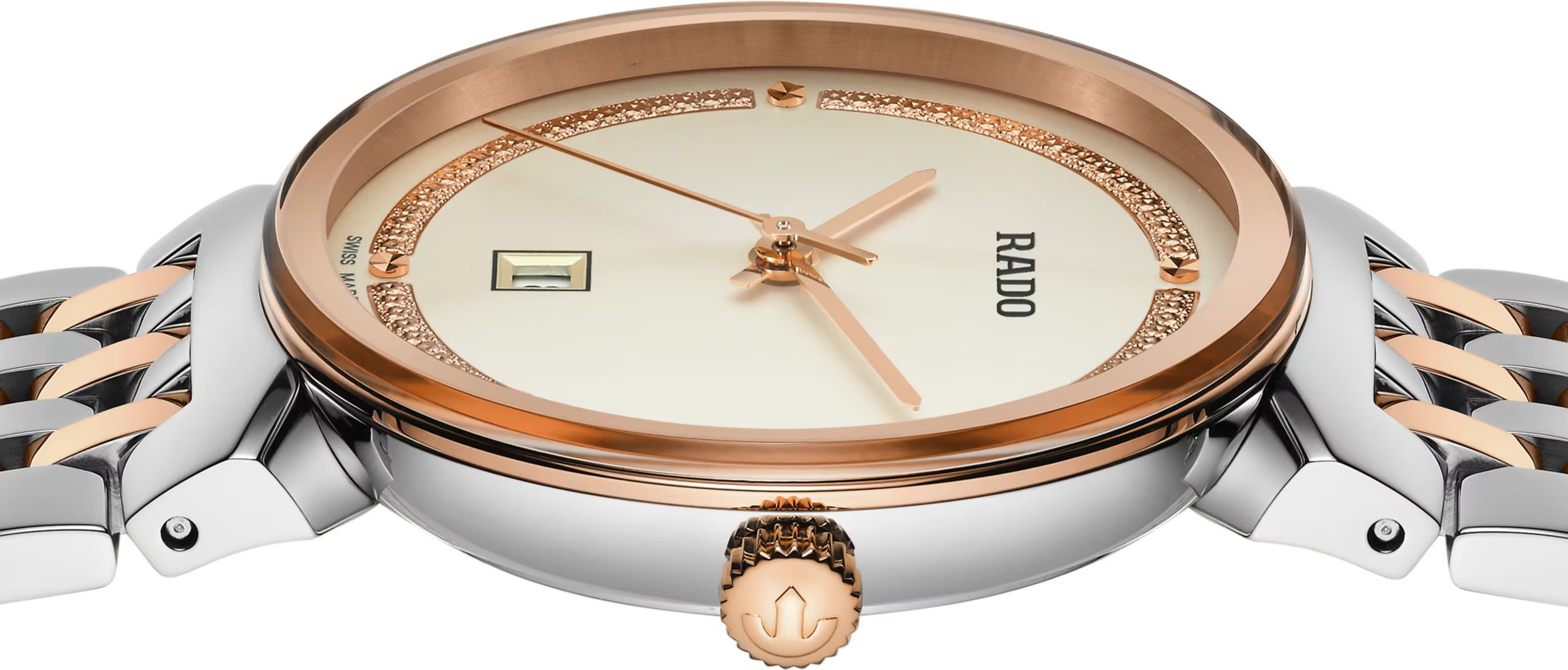Rado Florence R48913403 jsou elegantní švýcarské hodinky, které osloví především zákaznici hledající jemný klasický styl, vysokou každodenní praktičnost a současně velmi kultivovaný vzhled. Tento model z kolekce Florence působí čistě, lehce a mimořádně harmonicky. Šampaňský číselník je doplněn třpytivými dekorativními prvky v odstínu růžového zlata, které hodinkám dodávají jemně slavnostní charakter, ale stále zachovávají jejich decentní eleganci. Růžově zlatě zbarvené ...