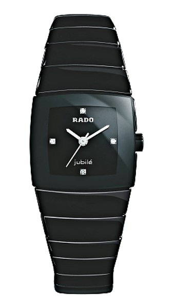 • Funkce a popis:Čas, strojek swiss ETA quartz - přesnost chodu 0 - 0,4 vteřiny denně, materiál HTC (High-tech Ceramic) - velmi tvrdý materiál odolný vůči otěru o tvrdosti 1.200 - 1.900 Vickers (velmi lehký,velmi příjemný na nošení - ihned získává teplotu Vašeho zápěstí, patent Rado), zapínání na klipsu (motýlkové), číselník zdobí 4diamanty o o váze 0,011 karátů