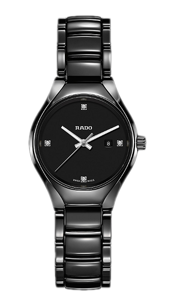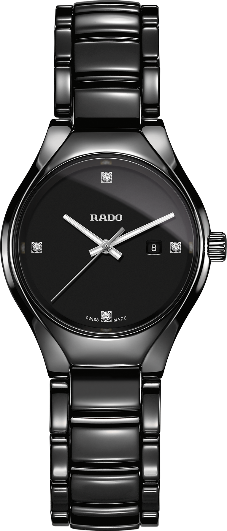 • Funkce a popis:Čas, datum, strojek swiss ETA quartz - přesnost chodu 0 - 0,4 vteřiny denně (E.O.L. - signalizace stavu baterie - cca. 14 dní před úplným vybitím baterie vteřinová ručička "skáče" po třech vteřinách - toto neovlivní přesnost chodu), materiál HTC (High-tech Ceramic) - velmi tvrdý materiál odolný vůči otěru o tvrdosti 1.200 - 1.900 Vickers (velmi lehký, velmi příjemný na nošení - ihned získává teplotu Vašeho zápěstí, patent Rado), zapínání na titanovou krytou klipsu (motýlkové), číselník zdobí 4 diamanty o váze 0,032 karátů