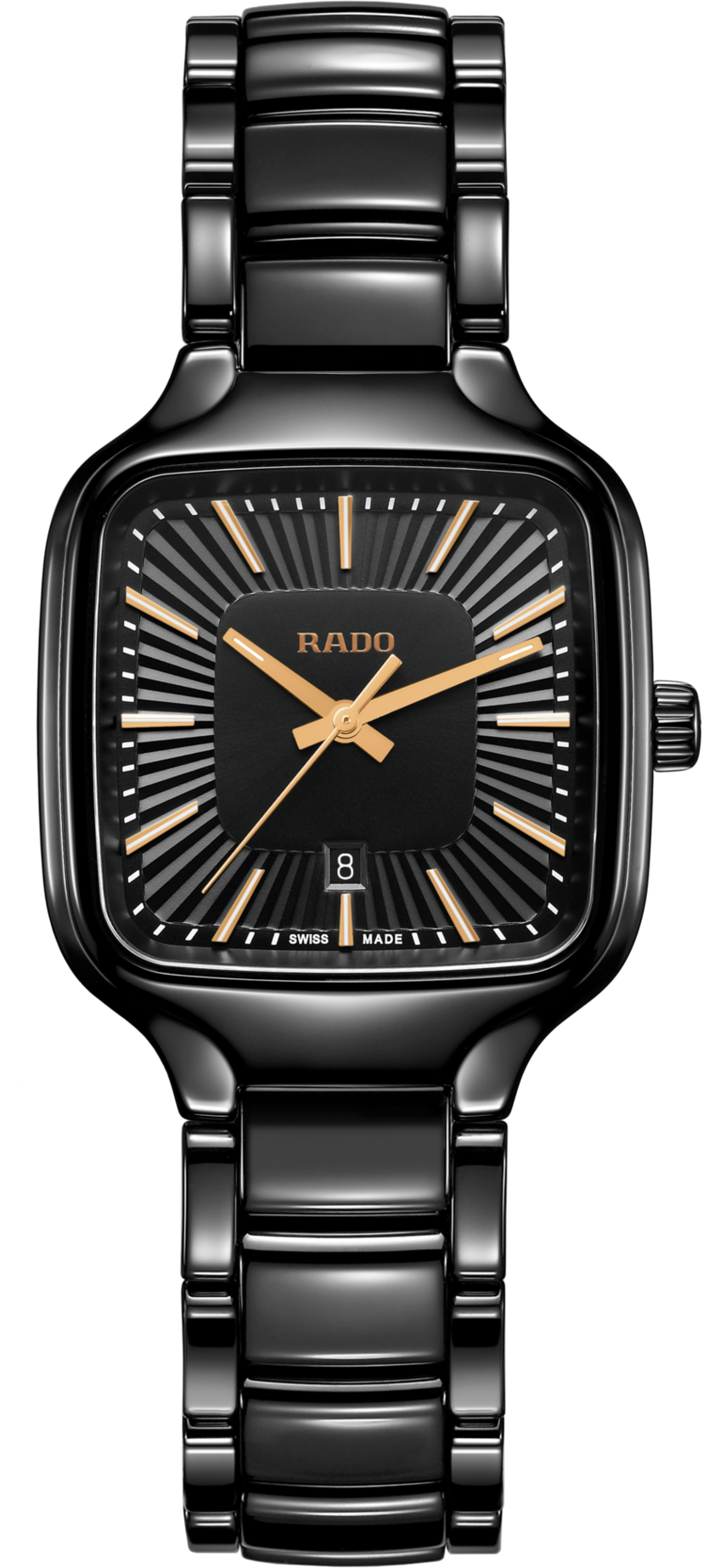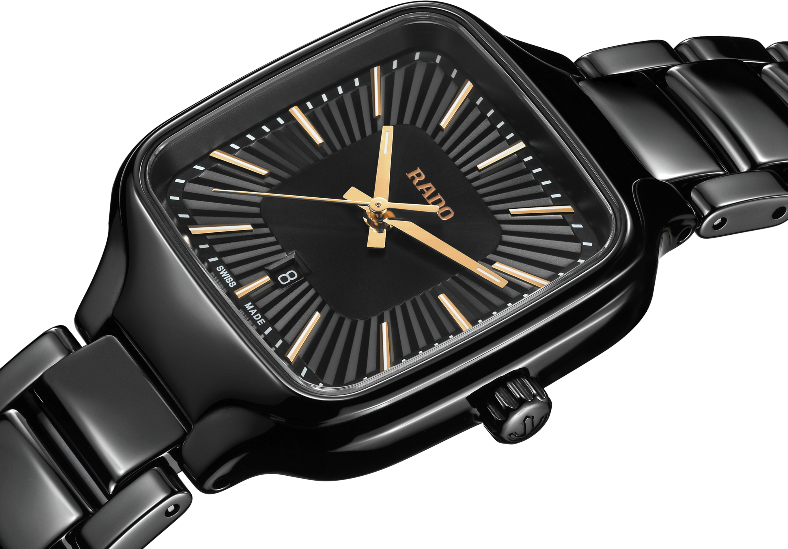 The True Square je nový pohled na ikonický tvar hodinek Rado. Tak jako první hodinky Rado vyrobené pomocí čtvercového vstřikovaného monoblokového high-tech keramického pouzdra, True Square jsou lehké, odolné proti poškrábání a pohodlné na nošení.
