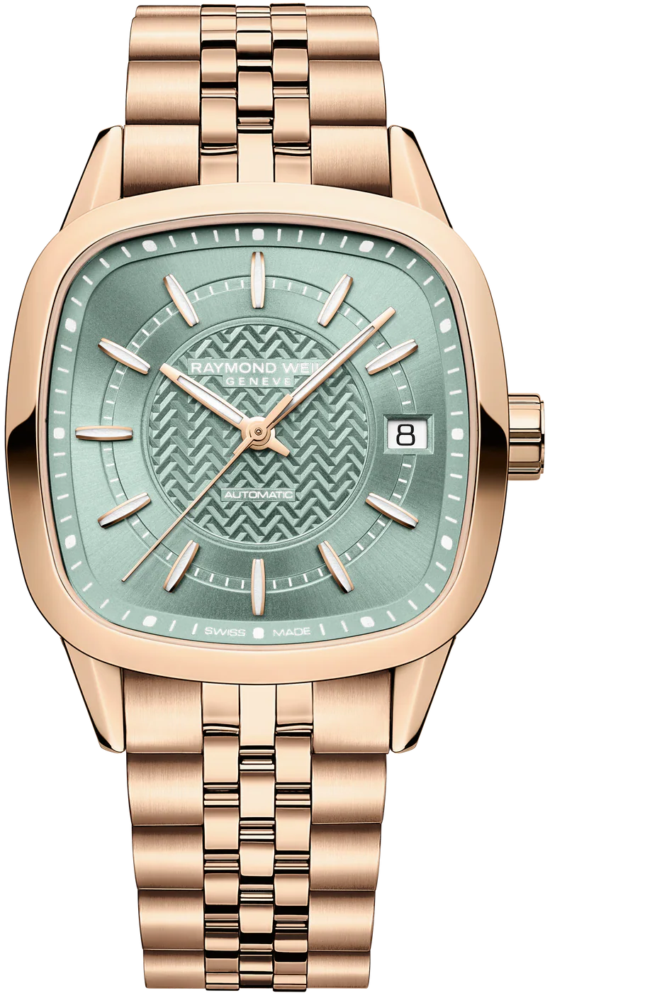 Model Raymond Weil freelancer cushion 2490-P5-52061 představuje mimořádně působivé dámské automatické hodinky, které spojují moderní tvar pouzdra, jemně luxusní vzhled a poctivý švýcarský hodinářský základ. Tato reference zaujme už na první pohled svým zeleným číselníkem, který směrem ke středu vytváří jemný gradientní efekt a dodává hodinkám hloubku i osobitost. Uprostřed číselníku se nachází charakteristický motiv ve tvaru písmene W, jenž odkazuje na podpis značky ...