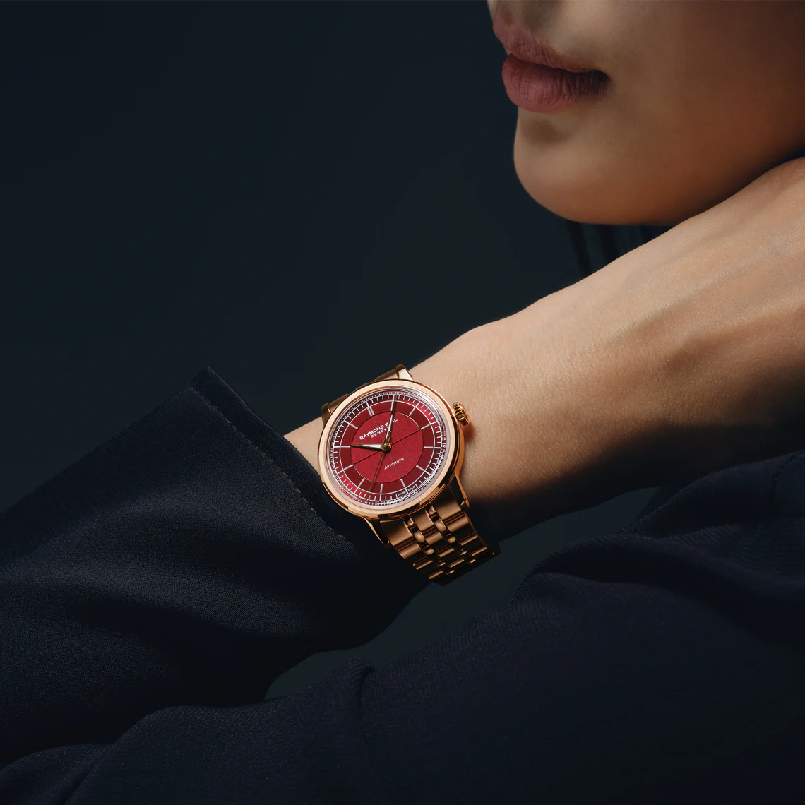 Raymond Weil Millesime Central Seconds 2125-P5-45001 jsou jemné švýcarské hodinky v 35mm provedení, které zaujmou červeným číselníkem a teplým tónem růžového zlata. Tento model osloví nositele, který hledá menší mechanické hodinky s výraznou osobností, ale stále s vysokou mírou elegance a kultivovanosti. Červený sektorový číselník působí hluboce, noblesně a podle světla velmi živě, aniž by sklouzl k prvoplánové nápadnosti. Centrální vteřinová ručka ...