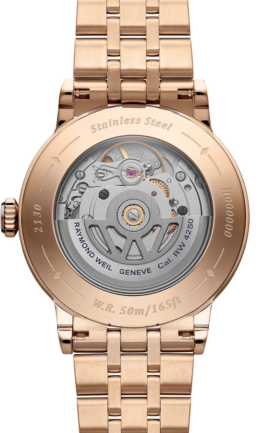 • Funkce a popis:Čas, strojek Swiss Raymond Weil RW4251 = rezerva chodu 41 hodin, 26 kamenových uložení, polokmity setrvačky 28.800/h (4 Hz)  = diference 2 - 4 vteřiny denně,  automatický nátah (hodinky se natahují pohybem ruky) + ruční nátah (hodinky lze natáhnout/dotáhnout i ručně korunkou), oboustranný nátah rotoru, korunka pouzdra s logem RW (Raymond Weil), průhledné zadní víčko pro náhled na strojek