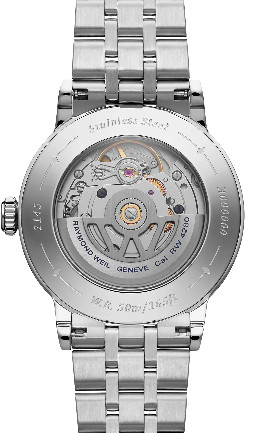 • Funkce a popis:Čas, měsíční fáze, strojek Swiss Raymond Weil 4280 (základ Sellita SW200-1) = rezerva chodu 38 hodin, 26 kamenových uložení, polokmity setrvačky 28.800/h (4 Hz)  = diference 2 - 4 vteřiny denně,  automatický nátah (hodinky se natahují pohybem ruky) + ruční nátah (hodinky lze natáhnout/dotáhnout i ručně korunkou), oboustranný nátah rotoru, korunka pouzdra s logem RW (Raymond Weil), průhledné zadní víčko pro náhled na strojek