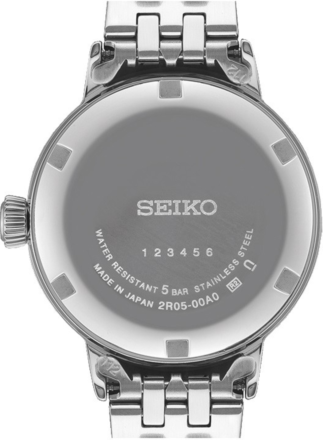 • Funkce a popis:Čas, datum, strojek vlastní výroby (in-house) automatic Japan Seiko Caliber 2R05 (21 kamenových uložení), rezerva chodu 41 hodin, polokmity setrvačky 21.600/h = přesnost chodu 3 - 7 vteřin denně, vlásek setrvačky - Seiko Spron 510 (odolný vůči otřesům a běžnému magnetickému poli pro stabilní přesnost chodu), materiál hnací pružiny (pera) - Seiko Spron 510 (pero je antimagnetické a po celou dobu své životnosti zachovává stejnou tvrdost  a pružnost, což je důležité pro trvalou a konstantní přesnost chodu strojku), hodinky jsou odolné magnetismu o síle 4.800 A/M (60 Gaussům = 5 cm, pro představu - mobilní telefon vzdálen od hodinek 5 cm zasahuje hodinky magnetickým polem o síle 400 A/M a přiblížíme-li hodinky na dotek k telefonu, hodinky zasáhne magnetické pole silou až 16.000 A/M), automatický nátah (hodinky se natahují pohybem ruky) + ruční nátah (hodinky lze natáhnout/dotáhnout i ručně korunkou), rotor samonátahu má oboustranný nátah, regulace přesnosti - ETACHRON (minimální vůle vlásku v zámečku regulační ručky zajišťuje vysokou přesnost hodinek),  nárazuvzdor setrvačky Diashock (Seiko) = hodinky jsou již slušně odolné vůči nárazu (otřesu) či pádu, hodinky disponují funkcí strojku "Hacking" (při vytažení korunky do nejzažší polohy pro řízení ručiček se zastavuje vteřinová ručička), hodinky splňují normu antimagnetičnosti ISO 764