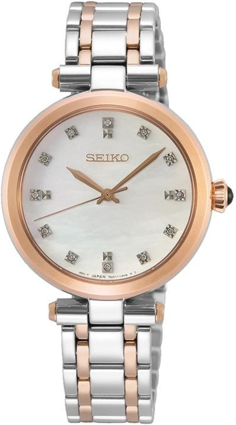 • Funkce a popis:Čas, strojek quartz Seiko 7N01 - přesnost chodu 0 - 0,5 vteřiny denně, číselník je zdobený diamanty