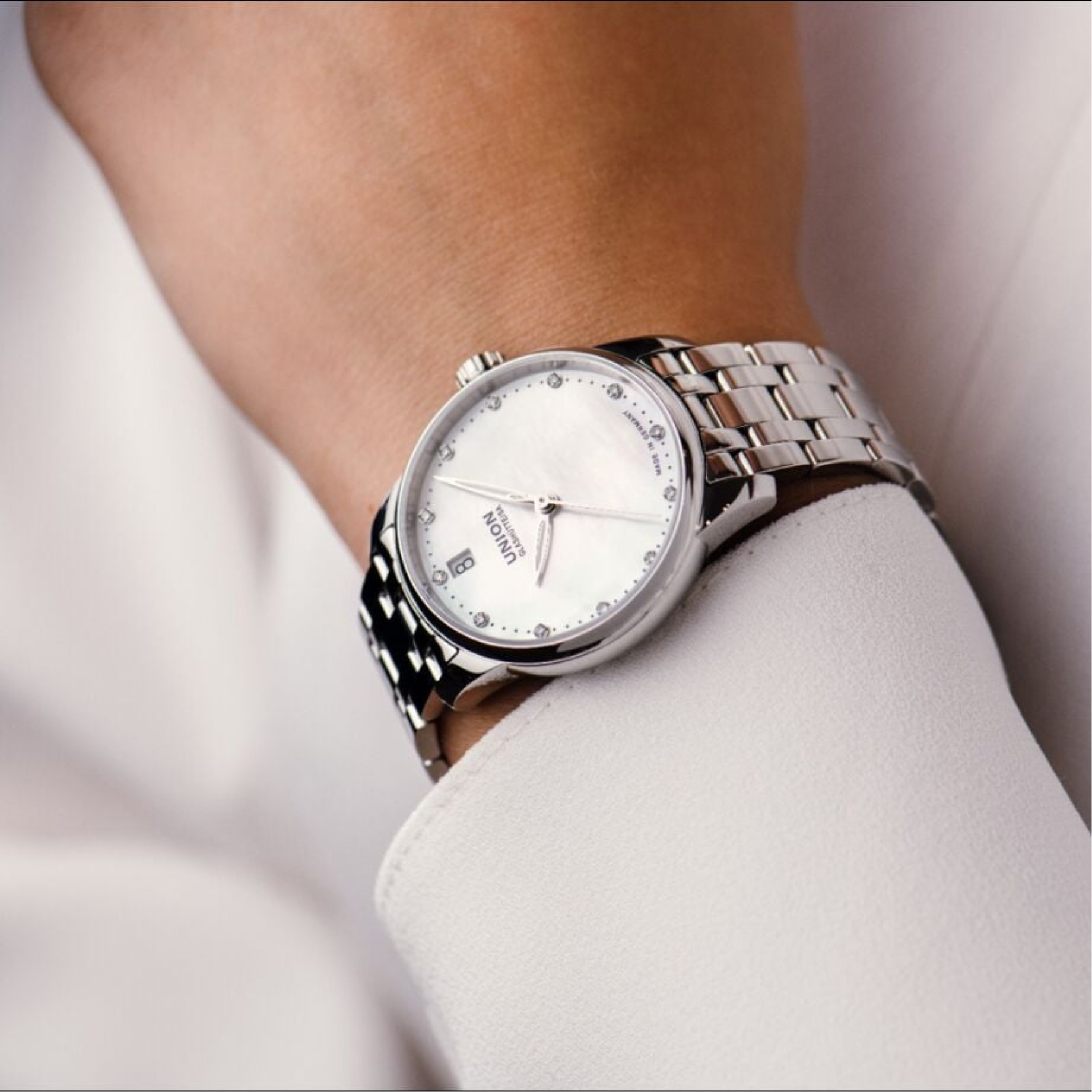 Nerezové pouzdro Seris Date s průměrem 33 mm vypadá na ženském zápěstí vždy báječně. Dlouhé, štíhlé očka zajišťují, že pásek těsně a pohodlně padne. Krásně tvarované, skeletonizované, květinové ručičky, které jsou charakteristickým znakem řady Seris, jsou snadno vidět pod odsouzeným safírovým sklíčkem, které dotváří elegantní bílý perleťový ciferník. Velmi ušlechtilý vzhled vytváří 12 diamantů ...