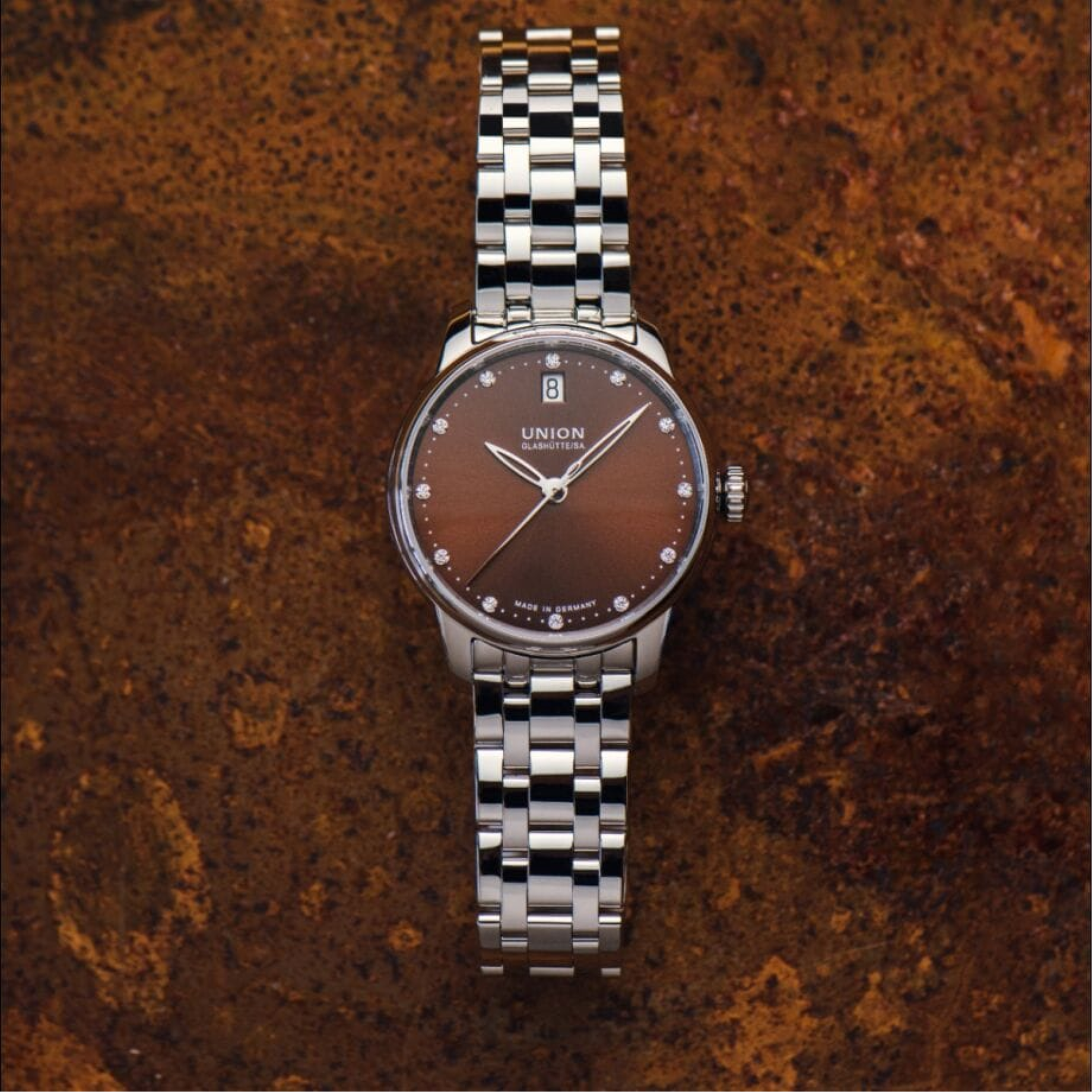 • Funkce a popis:Čas, datum pod číslicí 12, mimostředná vteřinová ručička, automatický strojek Germany cal. UNG-07.S1 upravovaný ručně hodinářem pro maximální možnou kvalitu a estetiku (21 kamenových uložení), polokmity setrvačky 25.200/h = přesnost chodu 2,5 - 4 vteřiny denně, křemíkový vlásek - téměř antimagnetický s bezkonkurenční stabilitou pro přesnost chodu a větší stabilitou proti případným nárazům či otřesům hodinek během nošení (zvyšuje přesnost hodinek), rezerva chodu = 60 hodin, krokové ústrojí ocel/kámen, výška strojku pouhých 4,6 mm, automatický nátah (hodinky se natahují pohybem ruky) + ruční nátah (hodinky lze natáhnout/dotáhnout dle potřeby i ručně korunkou