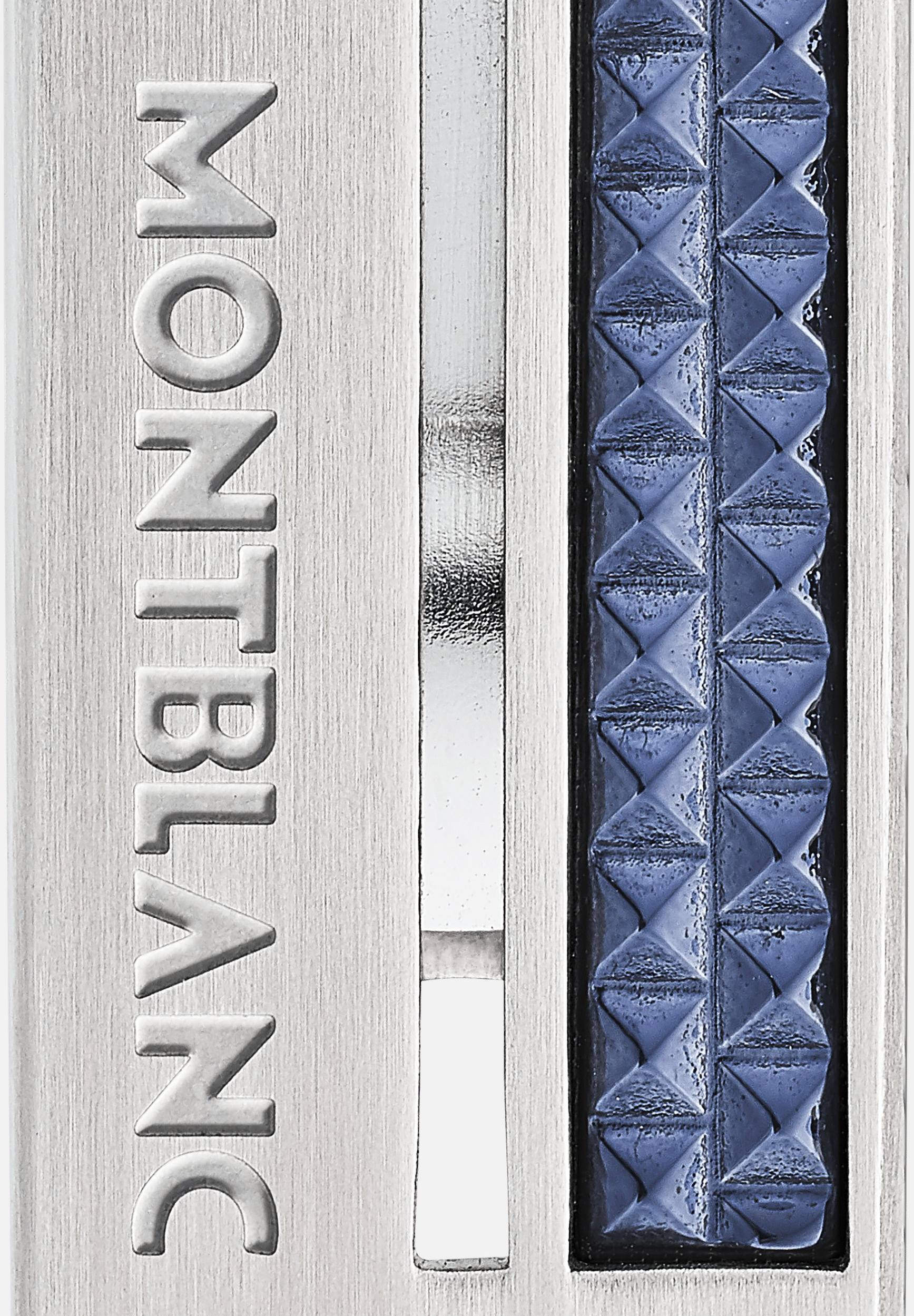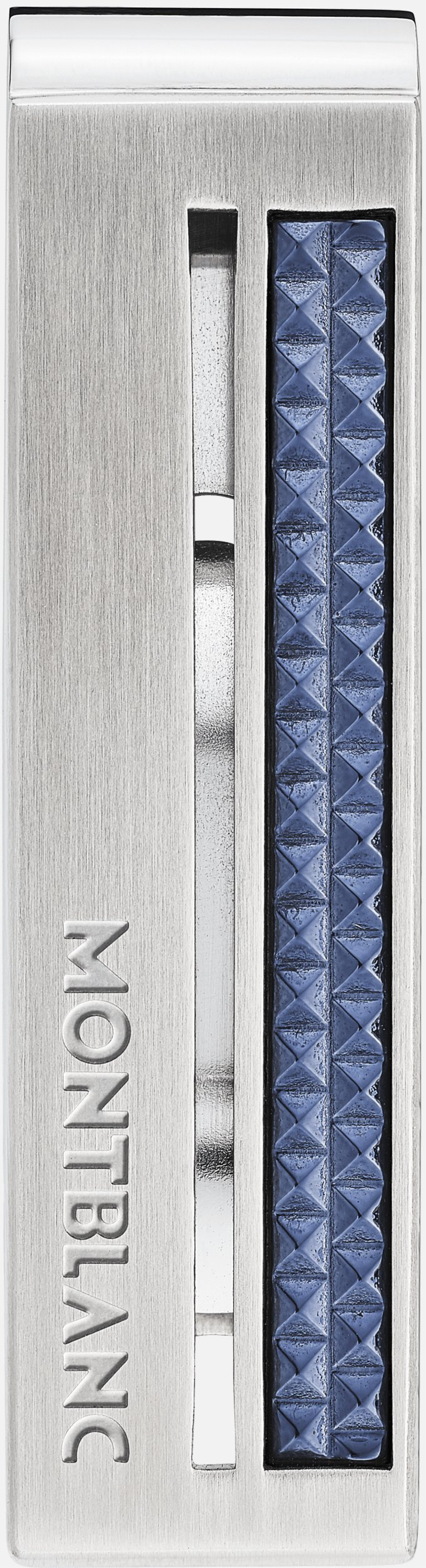 Kolekce Montblanc Meisterstück oslavuje nadčasový styl. Tato spona na peníze z nerezové oceli s vložkou s modrým vzorem, spojená s psacím nástrojem Montblanc Meisterstück.