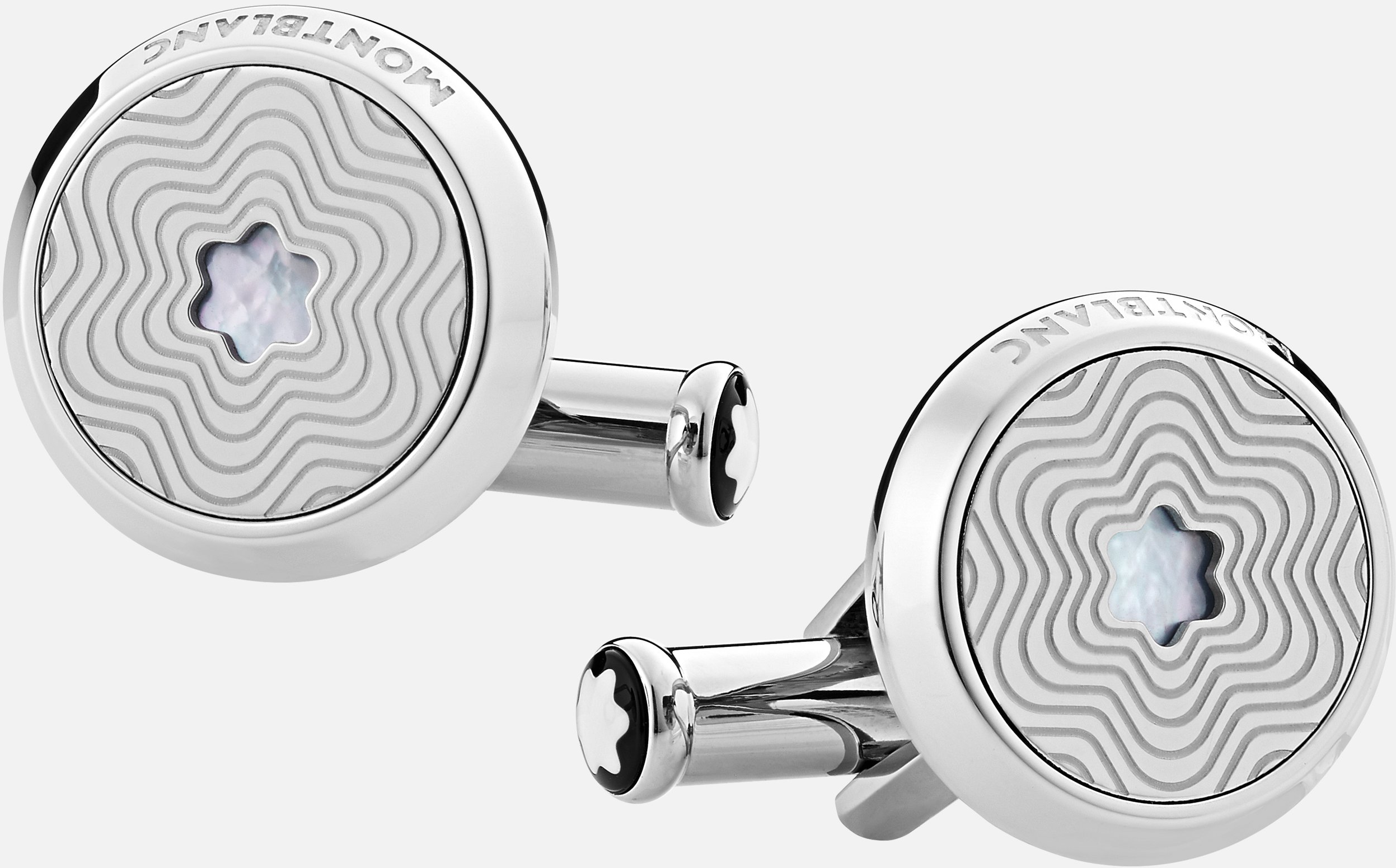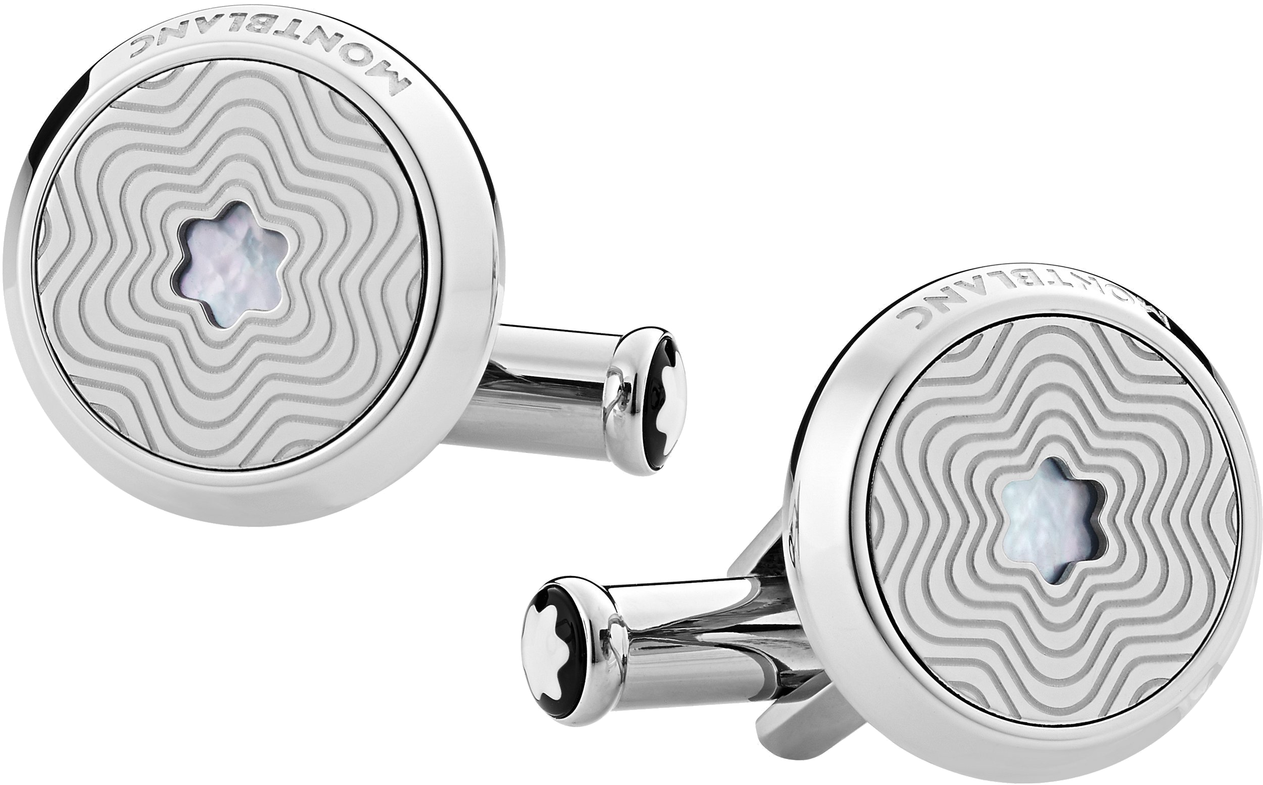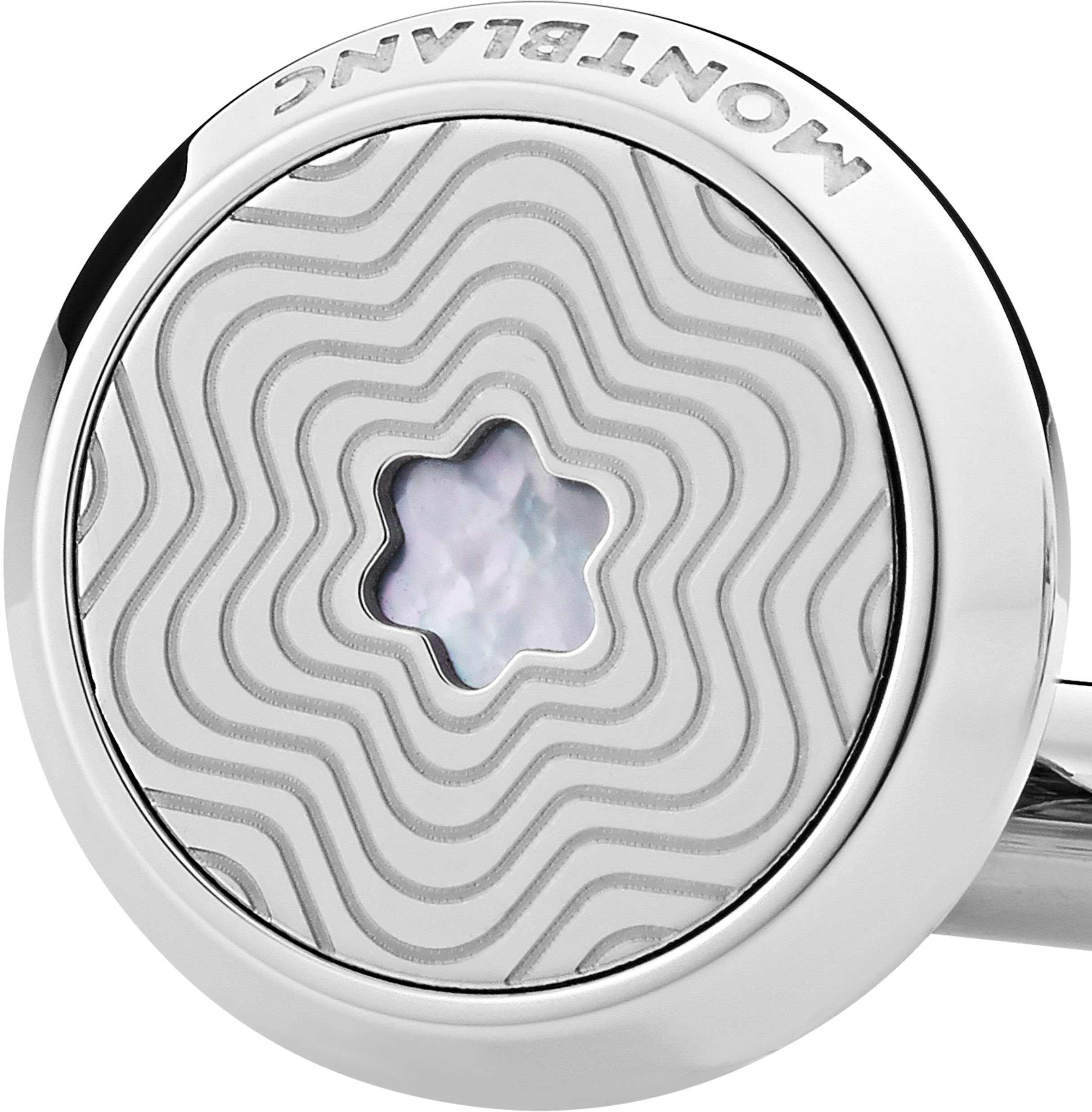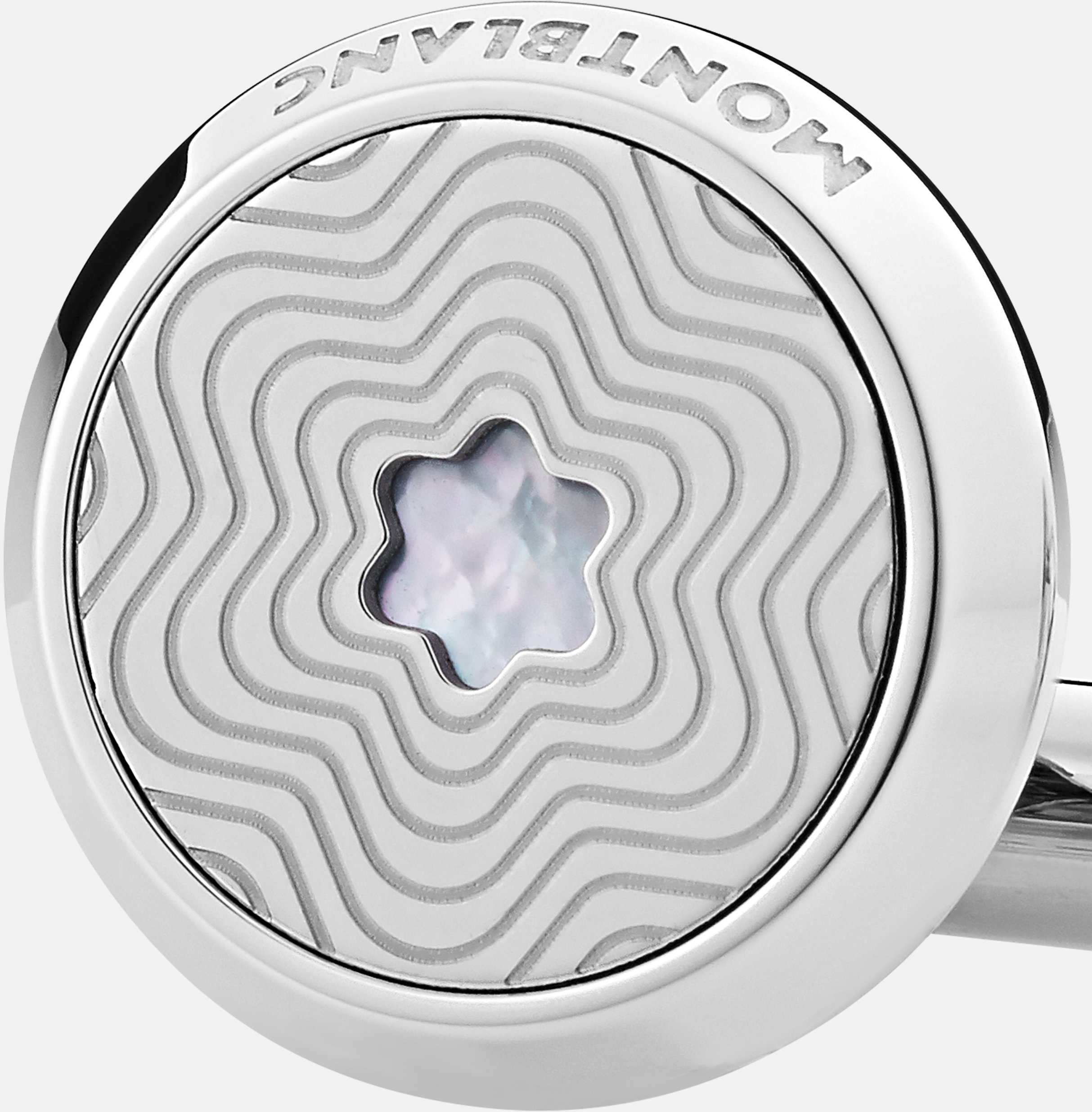Montblanc - Manžětový knoflíček - MB123808 - Round Cufflinks in Stainless Steel with Exploding Star Pattern and Mother-of-Pearl Snowcap Emblem
