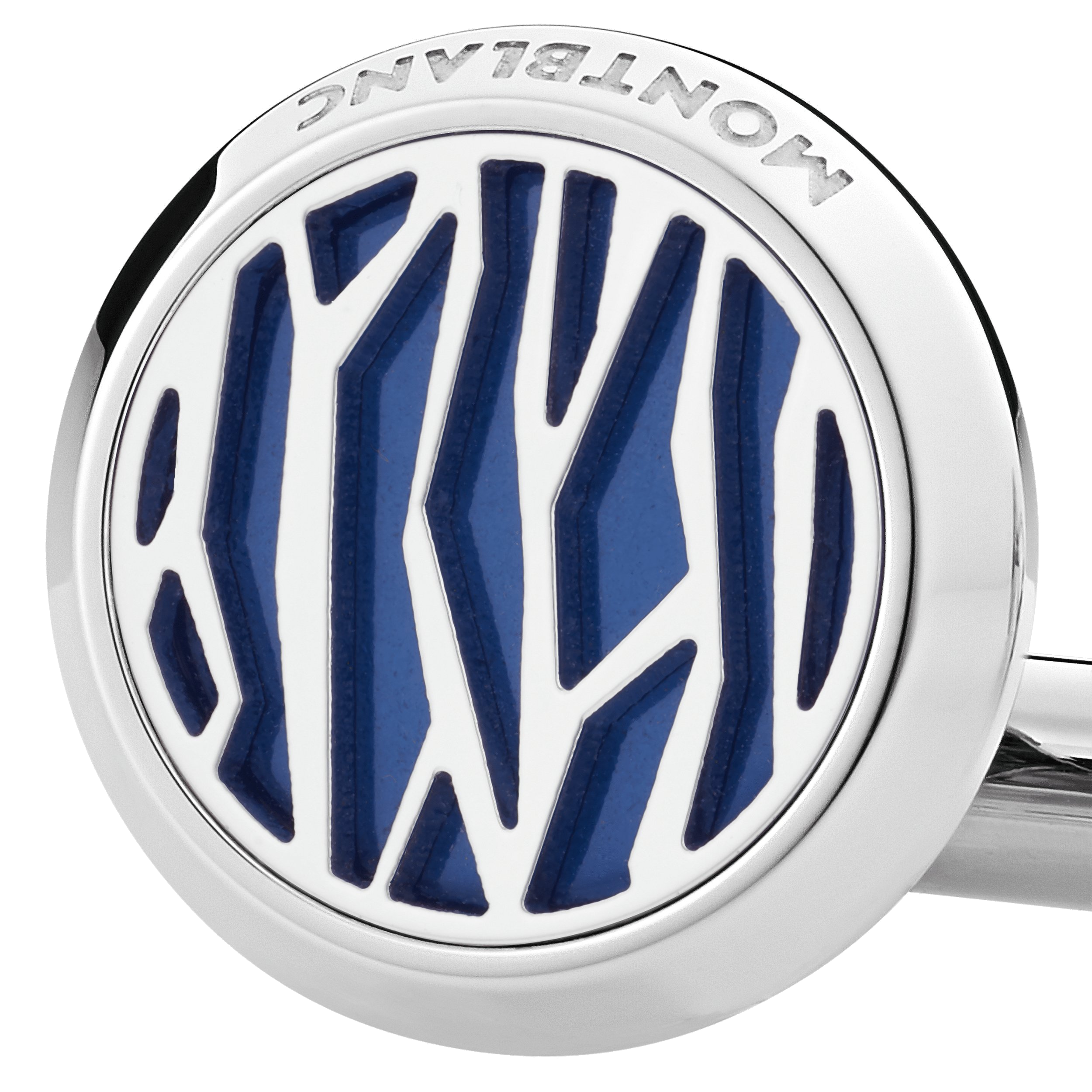 Manžetové knoflíčky Montblanc MB126100 essential Sartorial oslavují nenápadný styl a eleganci. Nadčasový kulatý tvar z nerezové oceli s povrchovými liniemi modrého laku vytváří rafinovaný šperk s mnoha možnostmi, jak zvýraznit styl a osobnost člověka.