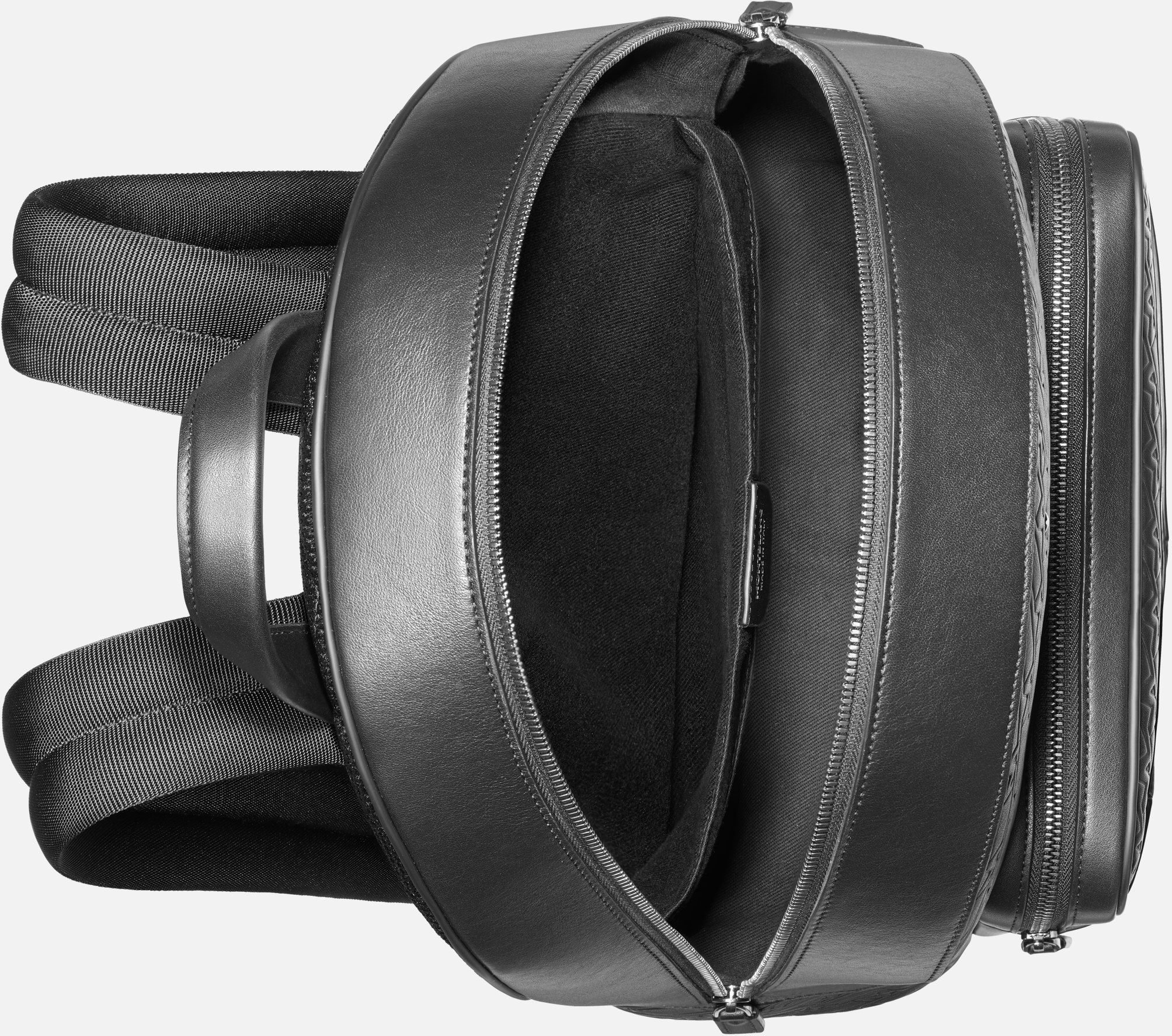 Vyrobeno z černé kůže s vyraženým M potiskem, známé pro svou měkkost a přirozený pocit z ruky. Batoh MB128618 má polstrovanou přihrádku, přední kapsu na zip a malou zadní kapsu na zip. Uvnitř jsou 2 otevřené kapsy, 1 kapsa na zip a 2 poutka na psací potřeby