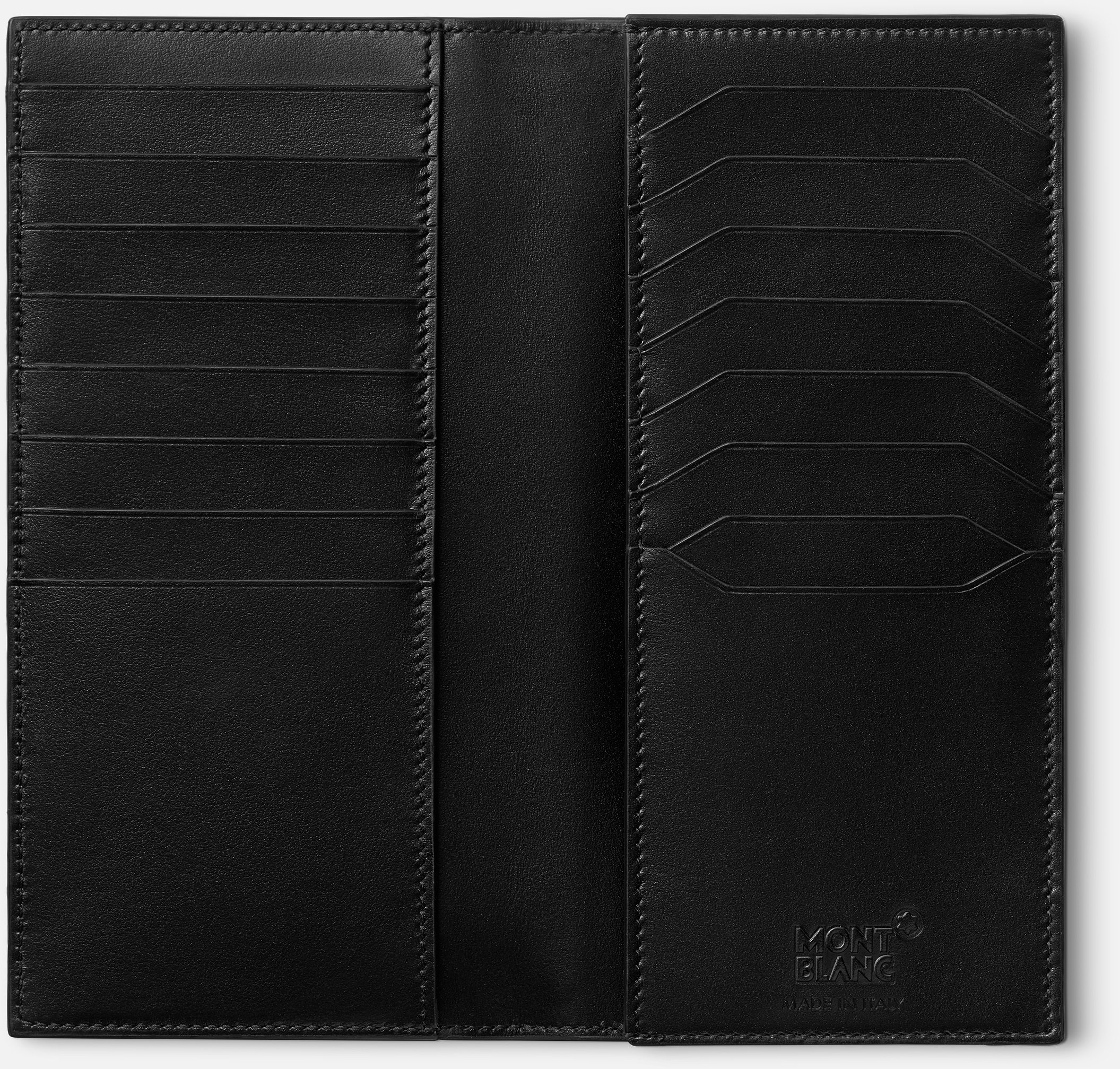 Peněženka Meisterstück Long MB129680 je vyrobena z nové tmavě lesklé černé kůže. Jeho nový čistý geometrický vnitřní design umocňuje podstatu funkčnosti a díky široké hlavní přihrádce, patnácti slotům na karty a další kapse nabízí prostor pro všechno.