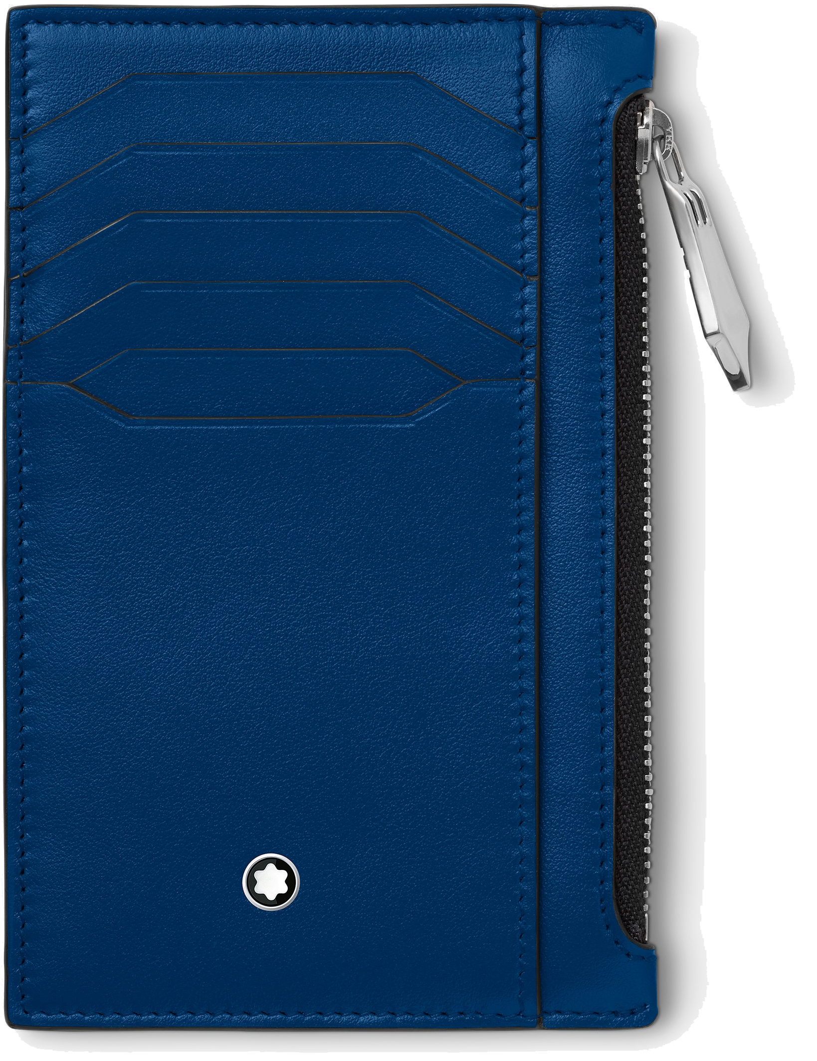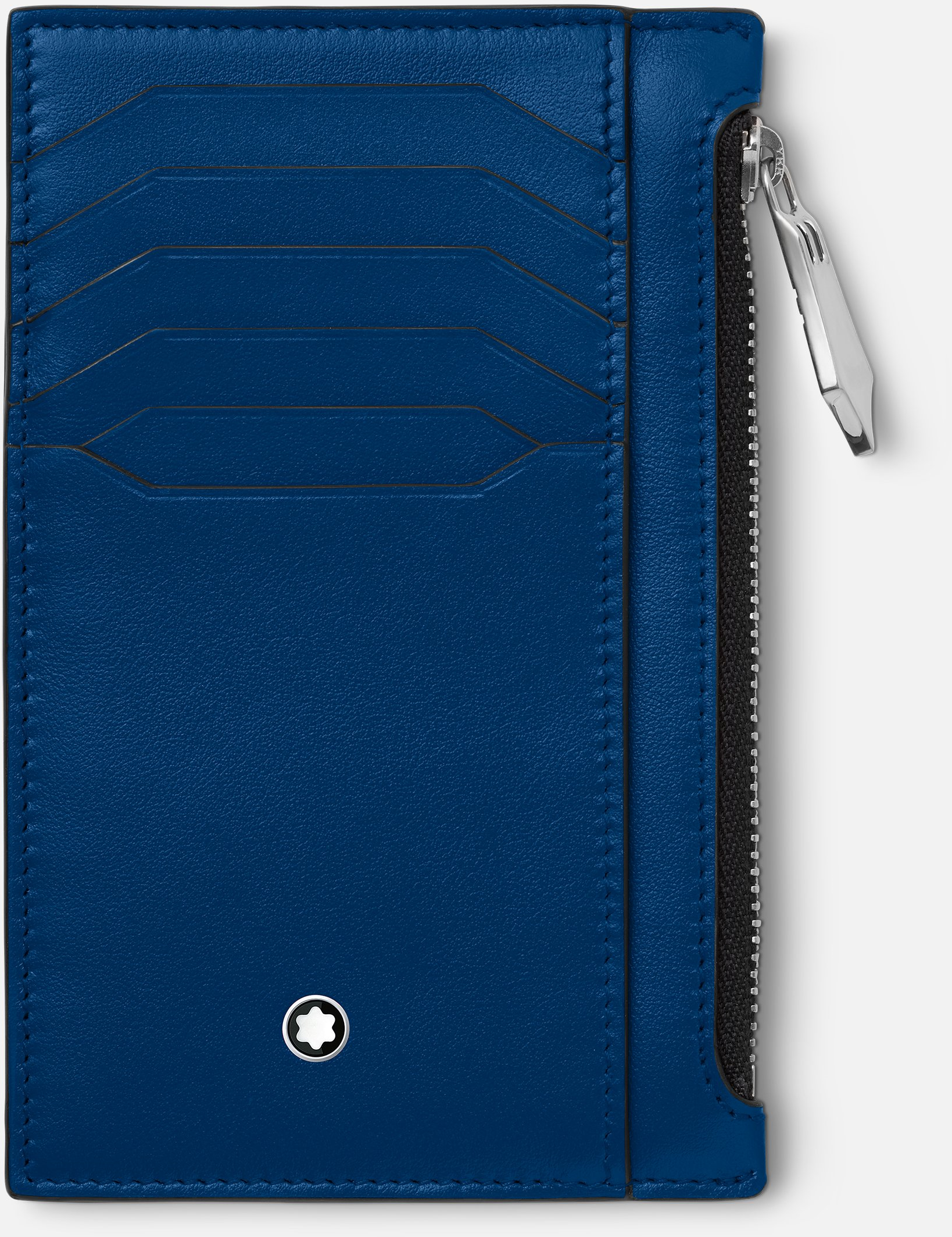 Peněženka Meisterstück MB129687 s osmi přihrádkami na karty je vyroben z nové tmavě lesklé modré kůže. Jeho nový čistý geometrický design vylepšuje podstatu funkčnosti s několika sloty na karty, kapsami na účtenky a kapsou na mince na zip. Kompaktní velikost se vejde do většiny kapes.