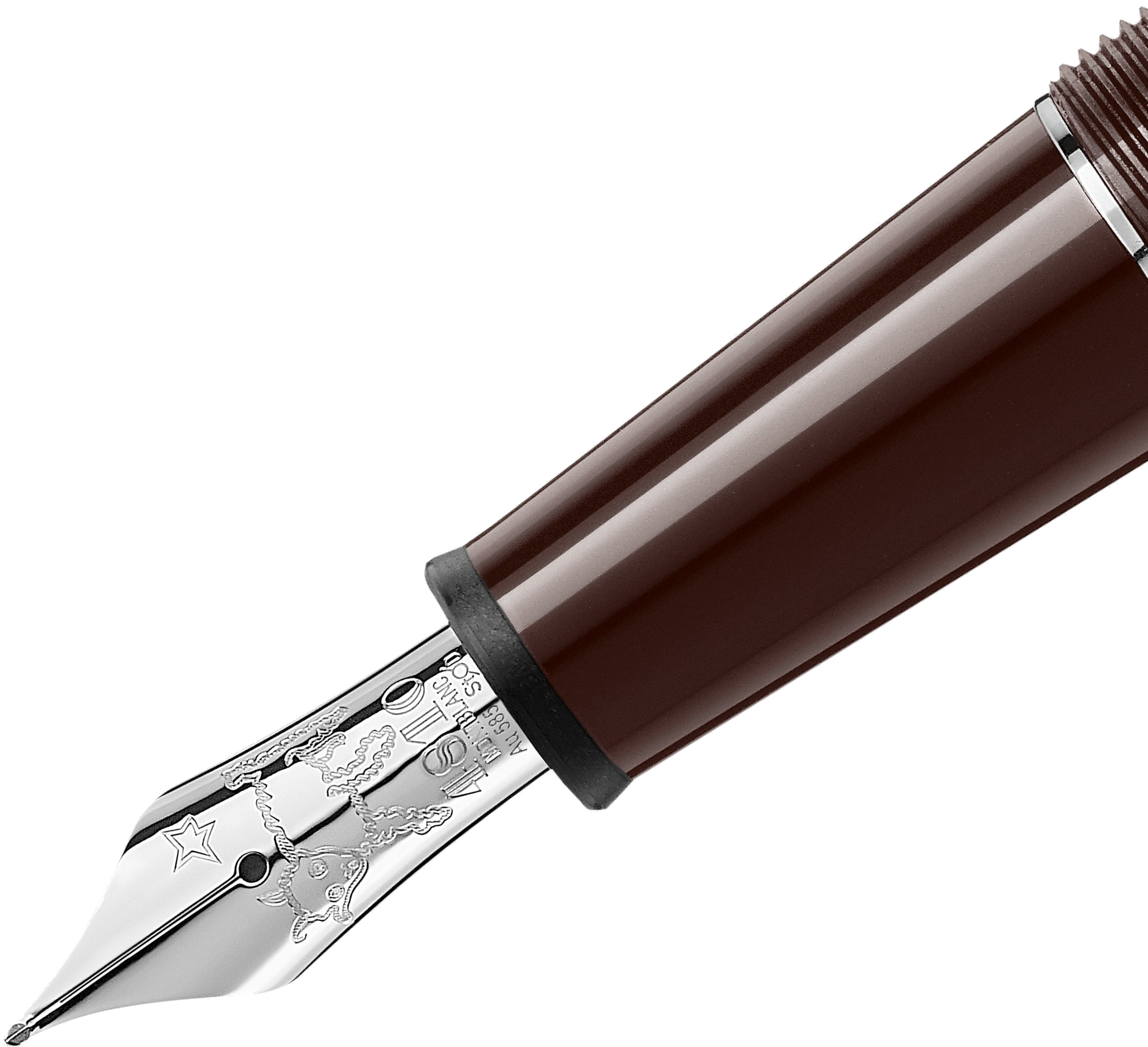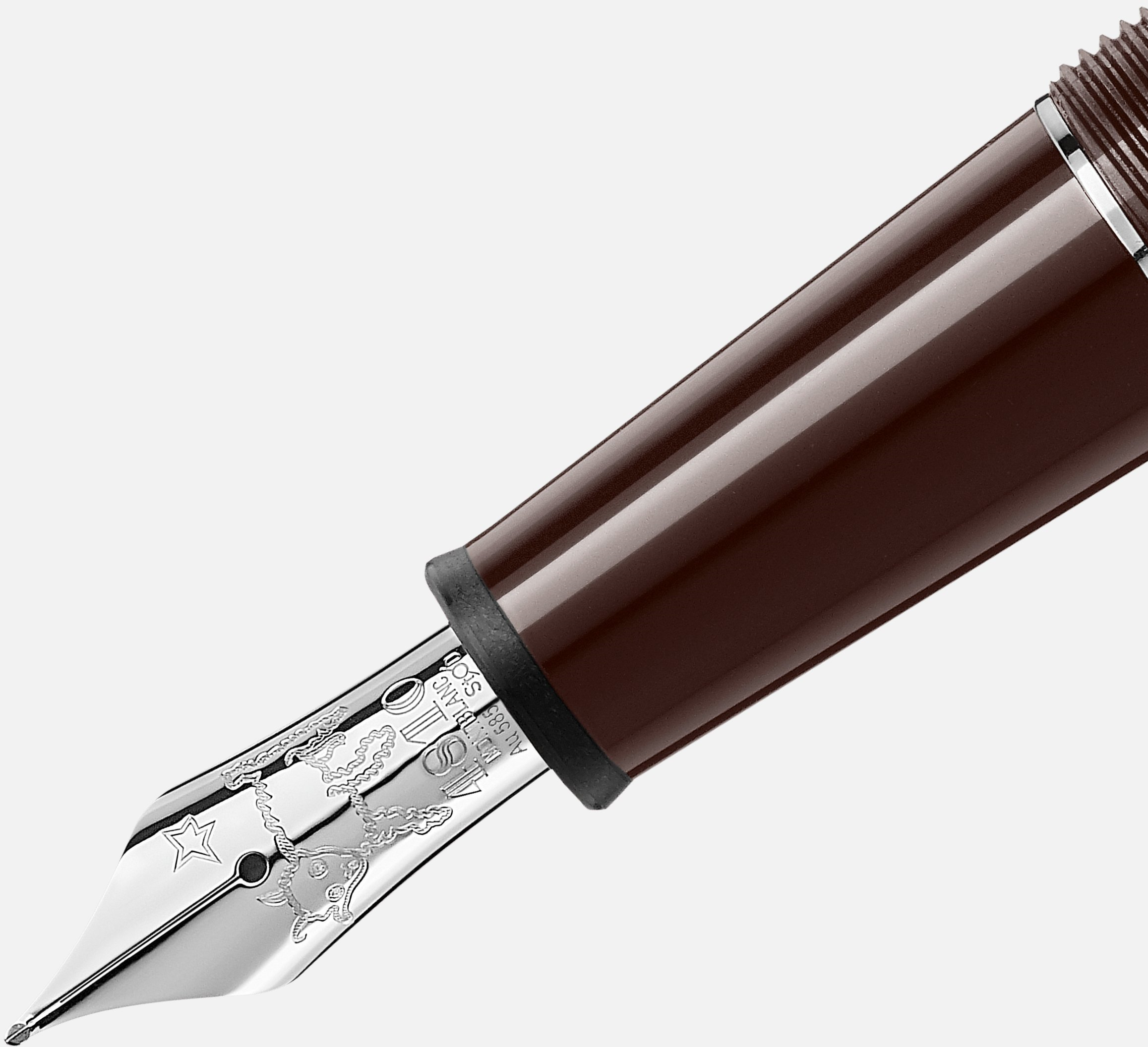 Plnicí pero Meisterstück Le Petit Prince Classique vyrobené z tmavě hnědé vzácné pryskyřice se vyznačuje svou leteckou estetikou. Čepice zobrazuje větu z knihy Le Petit Prince a je korunována legendárním znakem. Ve středu tří platinových prstenů je nápis Montblanc a klip je zdoben žlutou lakovanou hvězdou. Psací nástroj je doplněn ručně vyrobeným hrotem ze zlata 585/14 K, který je opatřen ovčí kresbou malého prince, symbolem vazby mezi těmito dvěma postavami.