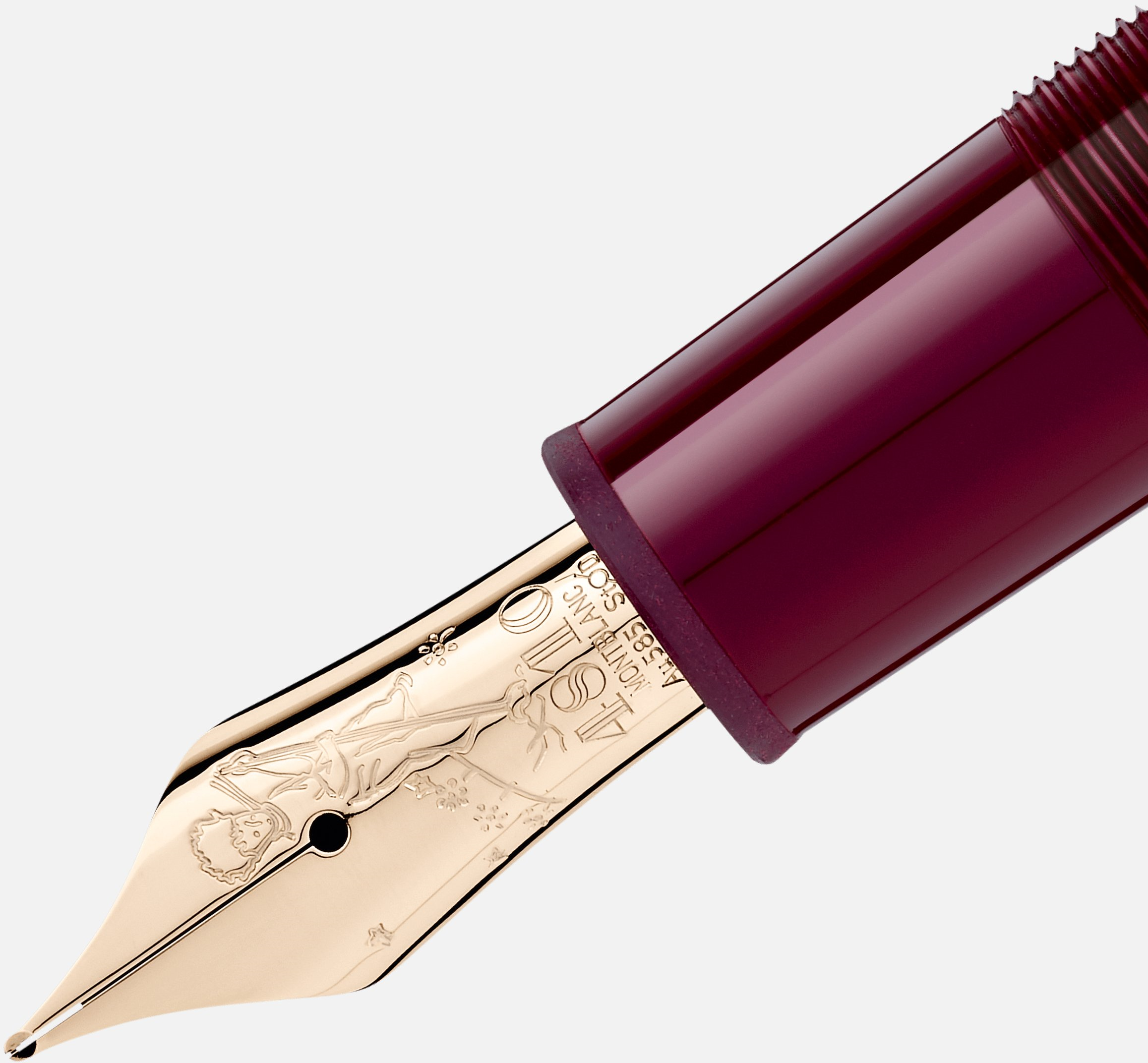 Plnicí pero Meisterstück Le Petit Prince LeGrand s bordovou pryskyřicí je spojeno s planetou: synonymem péče, lásky, smíchu a smysluplného života. Psací nástroj je zakončen ručně vyrobeným hrotem AU585 / 14k z masivního zlata zdobeným motivem Petit Prince inklinujícího k jeho planetě.