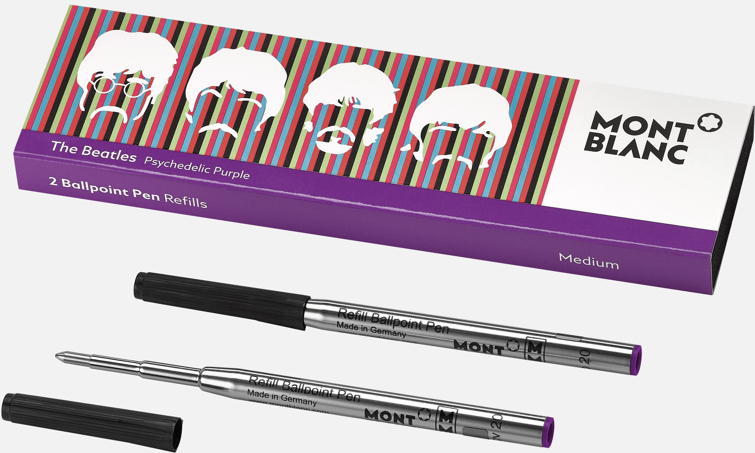 Barva, psychedelická fialová, je inspirována stylem rockové hudby zahájeným Beatles. Vhodné pro všechna kuličková pera Montblanc s výjimkou Meisterstück Hommage à WA Mozart. Balení = 2 vodiče. M = střední.
